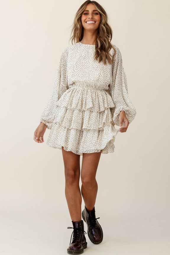 Get carried away with our adorable Odessa dress. Partially lined, it features long sleeves, elasticated cuffs and waist and layered ruffle skirt. Perfect for work teamed with a structured blazer or dressed up with nude pumps for Sunday Brunch.