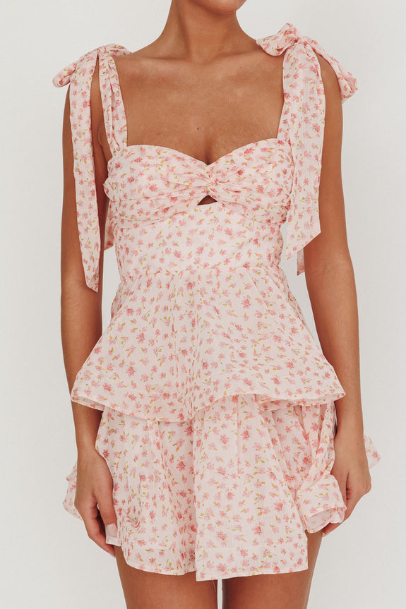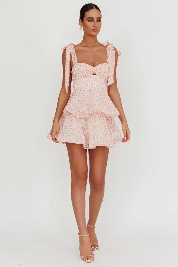 Oliana Tied Shoulder Tiered Mini Dress Peach