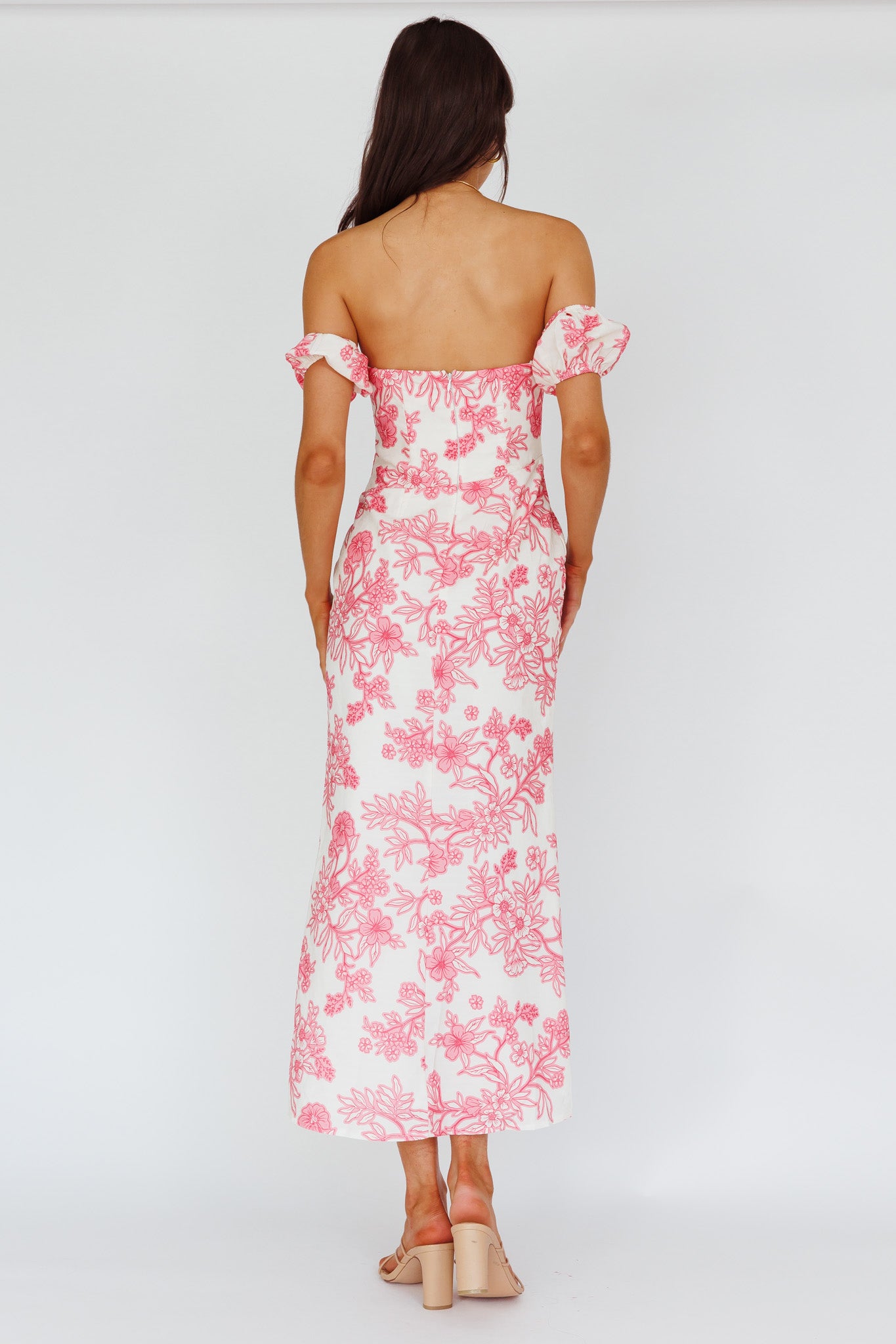 Olivier Off-Shoulder Midi Dress Floral Pink