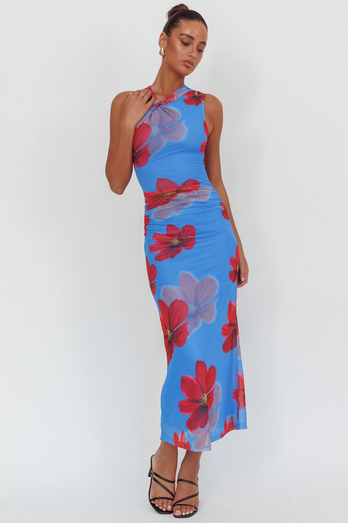 Make jaws drop when you float by in our stunning On Air maxi dress. We are obsessed with its gorgeous twist detail in the neckline! Wear it to a wedding or a special birthday celebration teamed with heels and a mini purse for a look that will have you feeling like a queen.