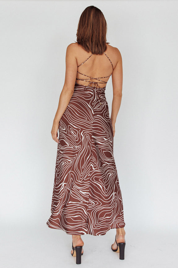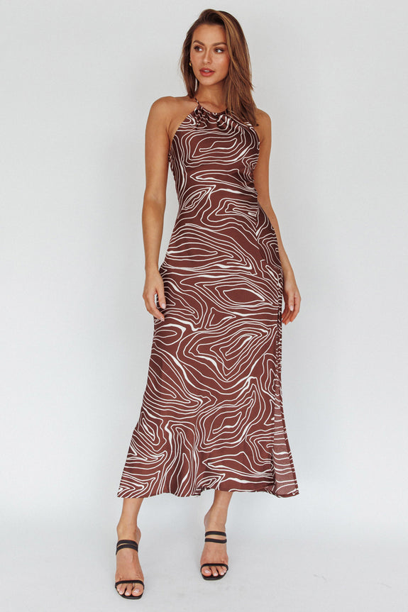 Onella Halterneck Laced Back Maxi Dress Ripple Brown