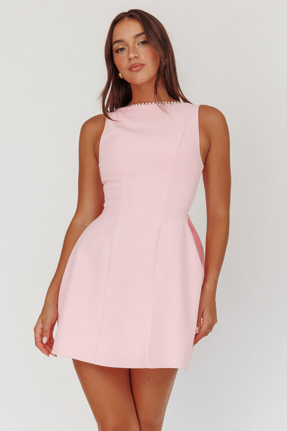 Opulent Pearl Trim Oversized Bow Mini Dress Pink