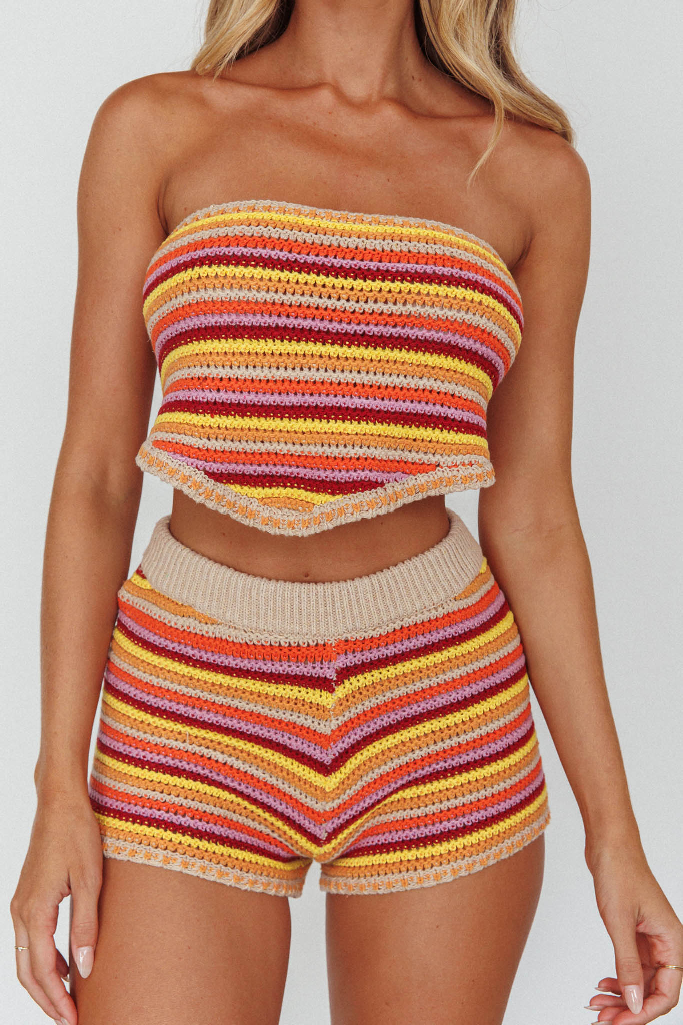 Heads will turn when you walk by in our Pacific shorts. Featuring on-trend crochet knit and an elasticated waistline. It's perfect for beachside strolls or sunset happy hours. Team it with its matching crop top and sandals for major boho vibes.