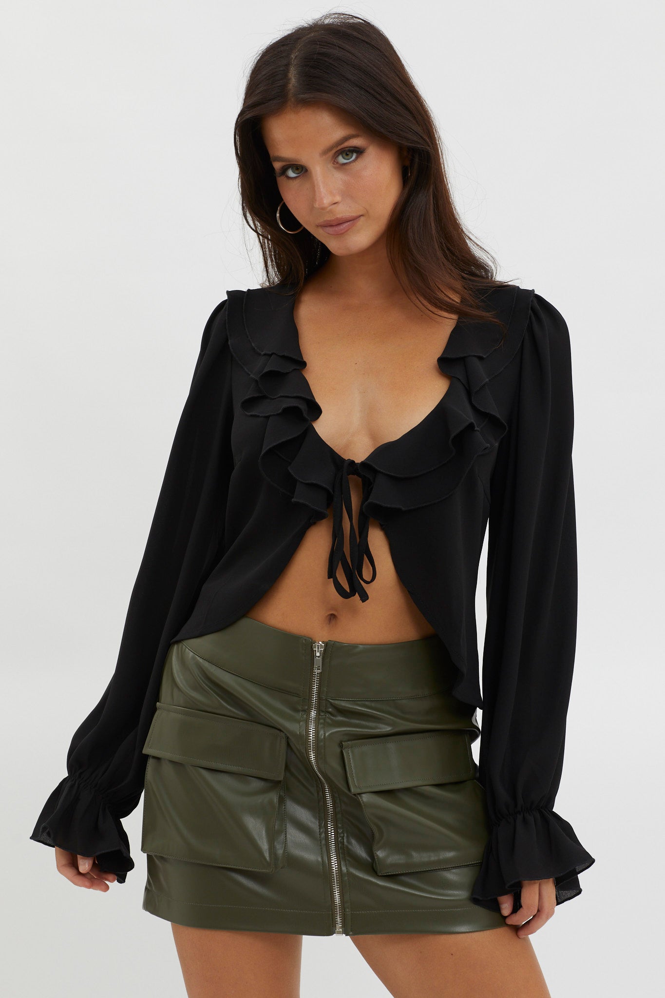 Make a statement in our romantic Pale Fire top. Featuring a ruffle trim and tied front, it's perfect for a flirty date night with your lover. Team it with a mini skirt and boots for a look that will leave a lasting impression.