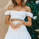 Hey there, cutie! You'll be turning heads in our super sweet Paradis crop top. You know we love an off-shoulder crop, and we are obsessing over its adorable eyelet embroidery fabric. Team it with its matching skirt and wedges or denim shorts and sneakers for a casual-cute look!