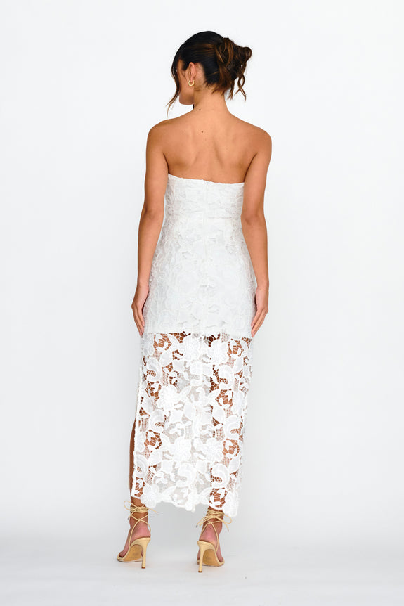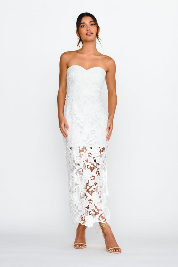 Parisa Sequin Embroidery Overlay Midi Dress White