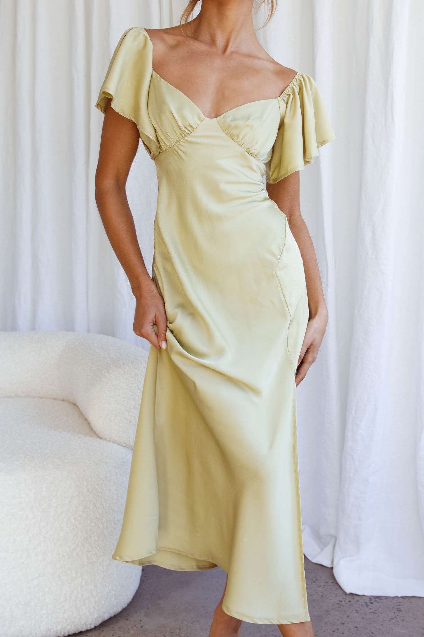 Park Avenue Flutter Sleeve Side Split Midi Dress Matcha