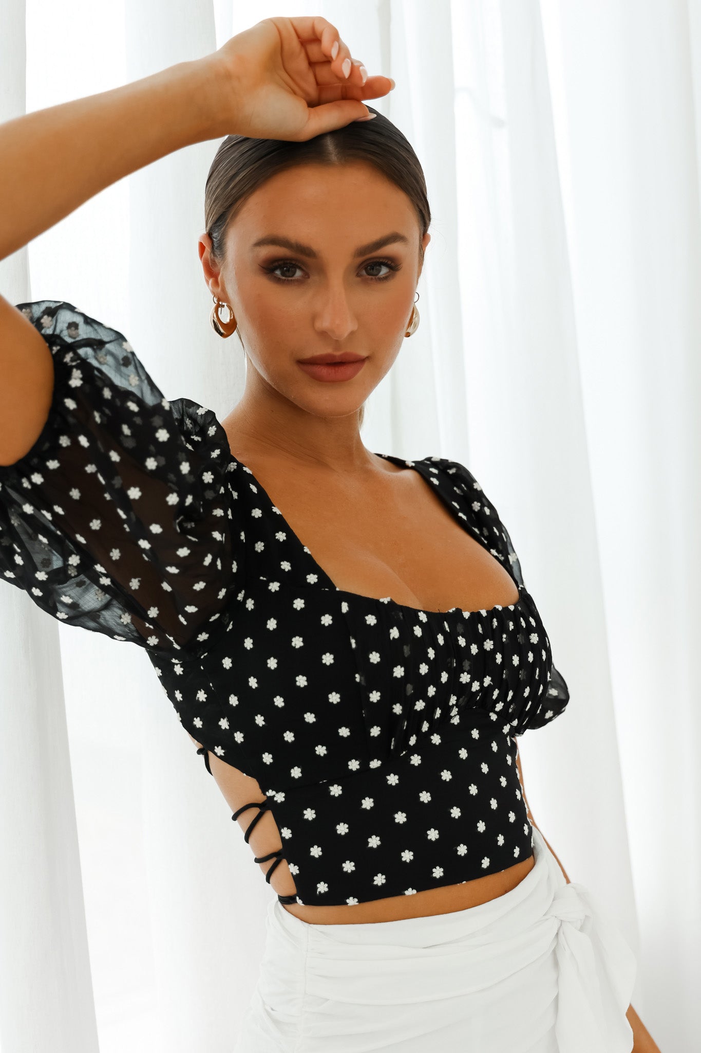 Hello, cutie! We are totally in love with our super cute Petite Cherie crop top. With its darling puff sleeves and lace-up back, it's sure to get you noticed. Wear it on a sunny weekend to the farmers' markets or coffee with your girls. It looks adorable teamed with mom jeans and slides for a cool-casual look.