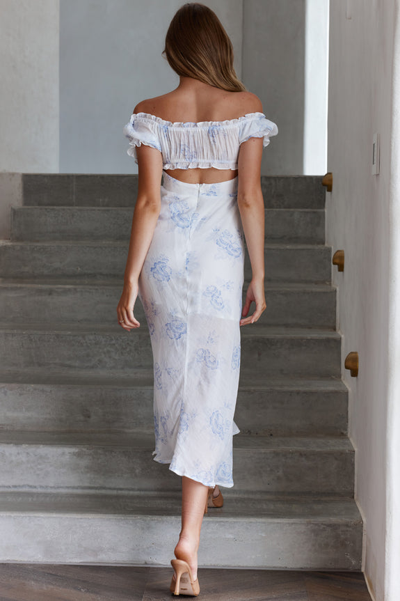 Pixie Puff Sleeve Midi Dress Floral Blue