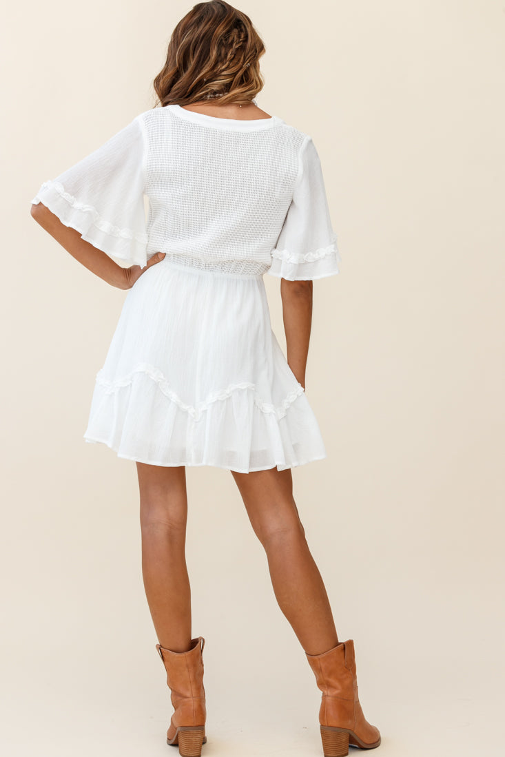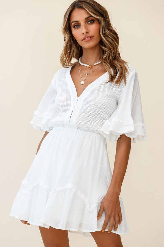 Float through your day in our chic Play It Again dress. Perfect for a movie date with bae or lunch with your best gals, this dress features super cute mesh detailing throughout the torso and sweet frill accents. Pair it with tan sandals for a casual look or dress it up with your fav mules and a tote for a brunch date with your besties.