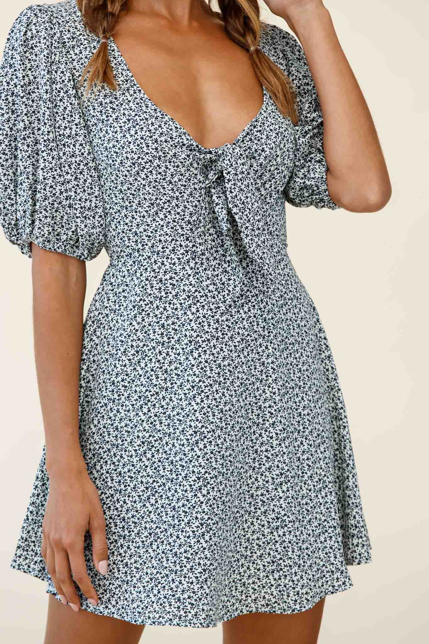 You'll turn heads everywhere you go in our super cute Portia dress. It's just the dress you've been looking for and the good news is, you can dress it up or down. We are obsessed with that gorgeous tied bust and its puff sleeves. Wear it to work teamed with flats and a tote or dress it up with heels for happy hour with the girls. Guaranteed to become your fav new closet addition.