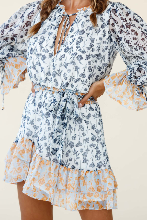 Okay girl, we see you! You'll go straight to the best-dressed list in our super cute Prague dress. We are loving its unique, contrasting floral fabric feature and layered ruffle hem! Perfect for the office or weekend brunching with your babes! Team it with mules and a tote for a chic look.