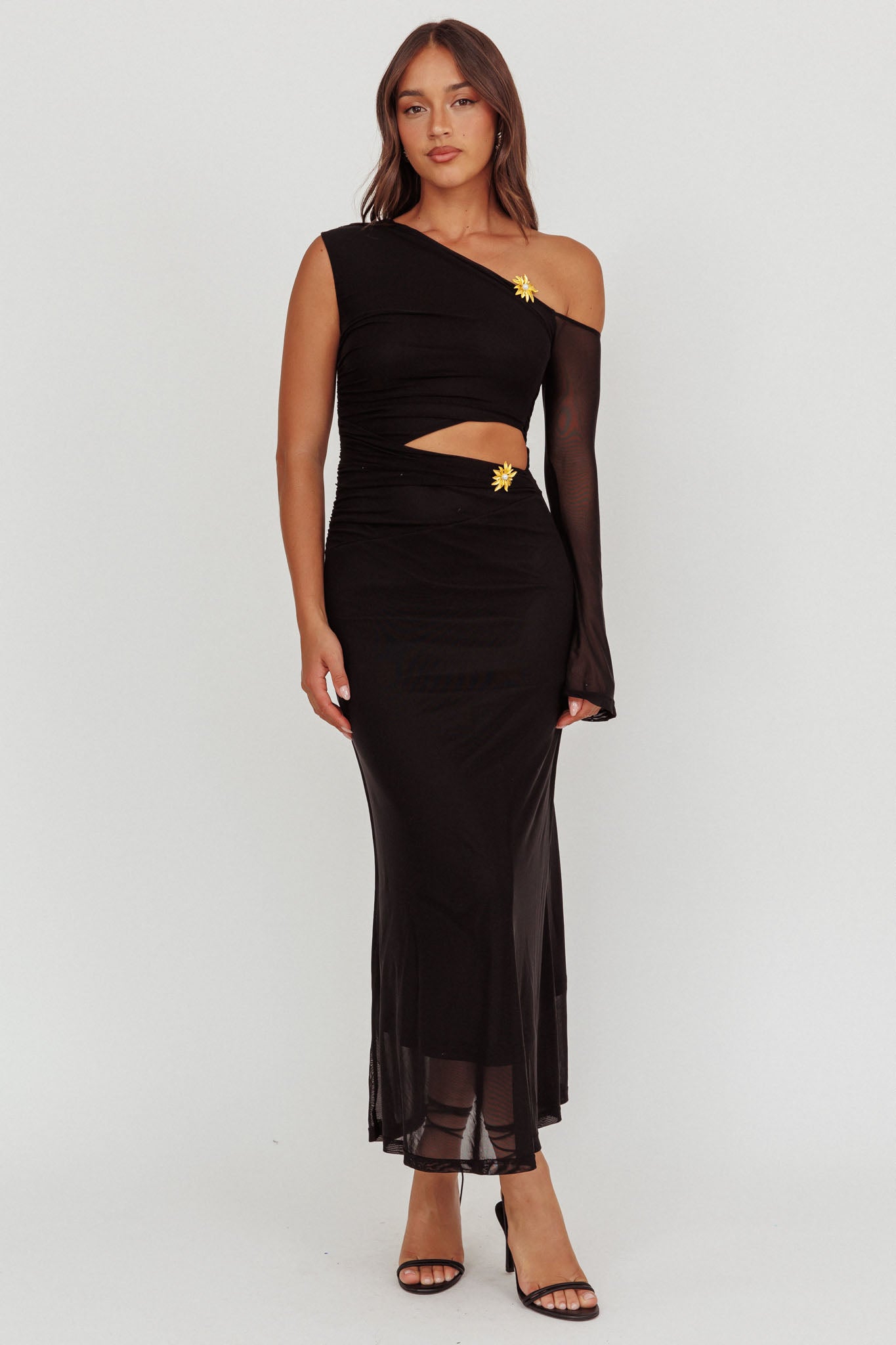 Make them stop and stare in our gorgeous Prima maxi dress. It features pretty, removable brooches and a cut-out in the waist. It's perfect for a special event or birthday dinner with your girls. Team it with strappy heels and a purse for a look that will make jaws drop.