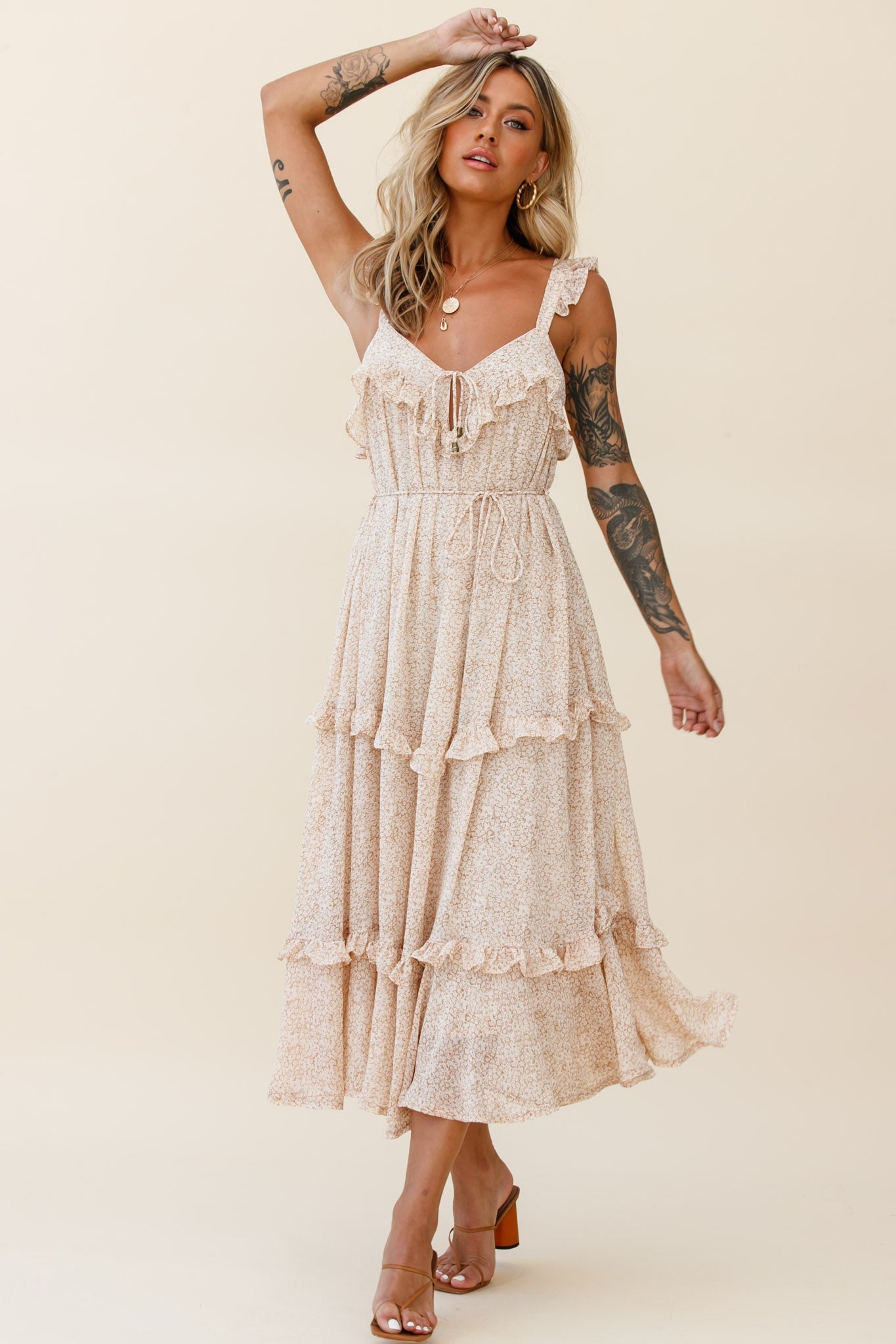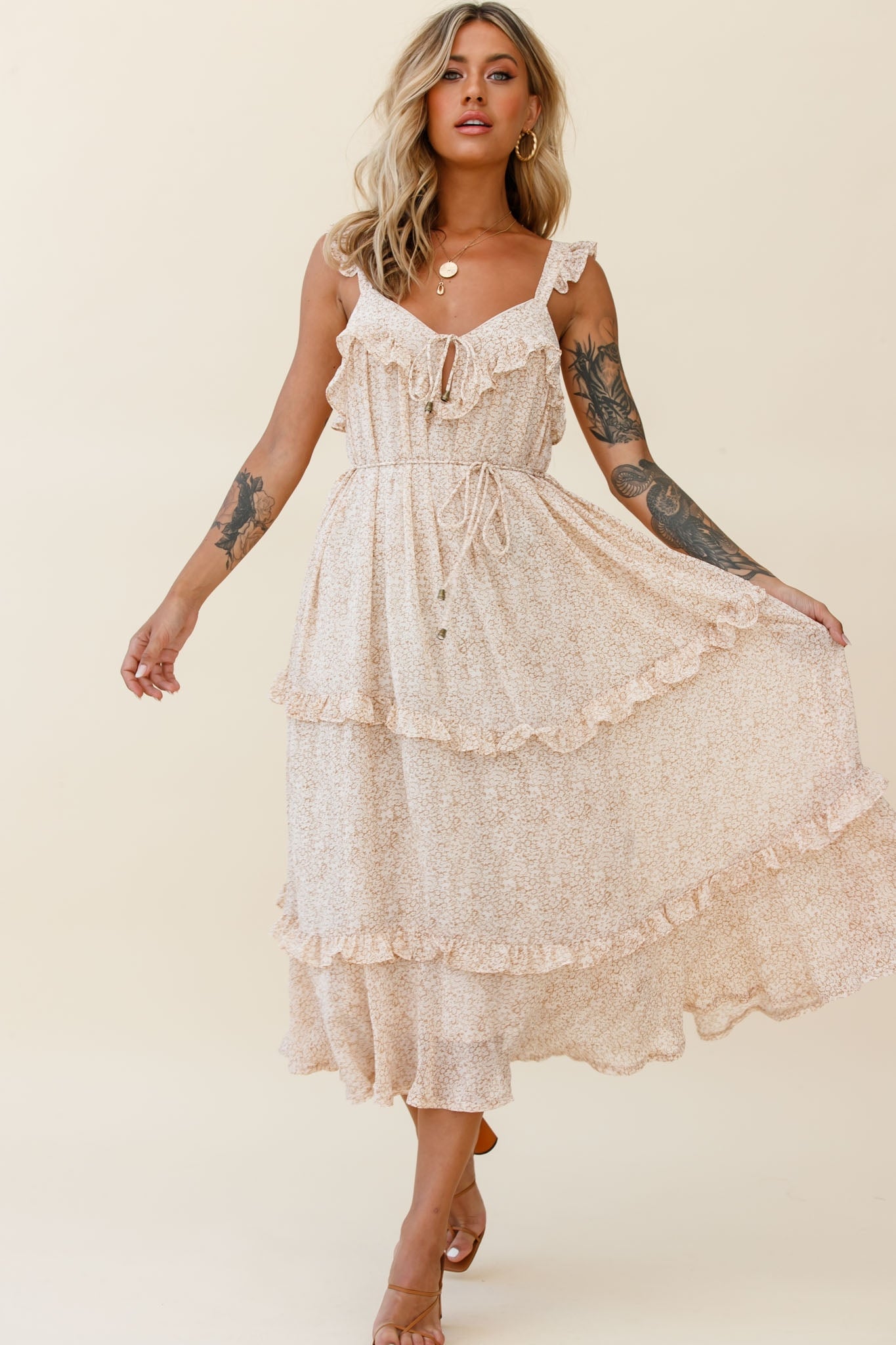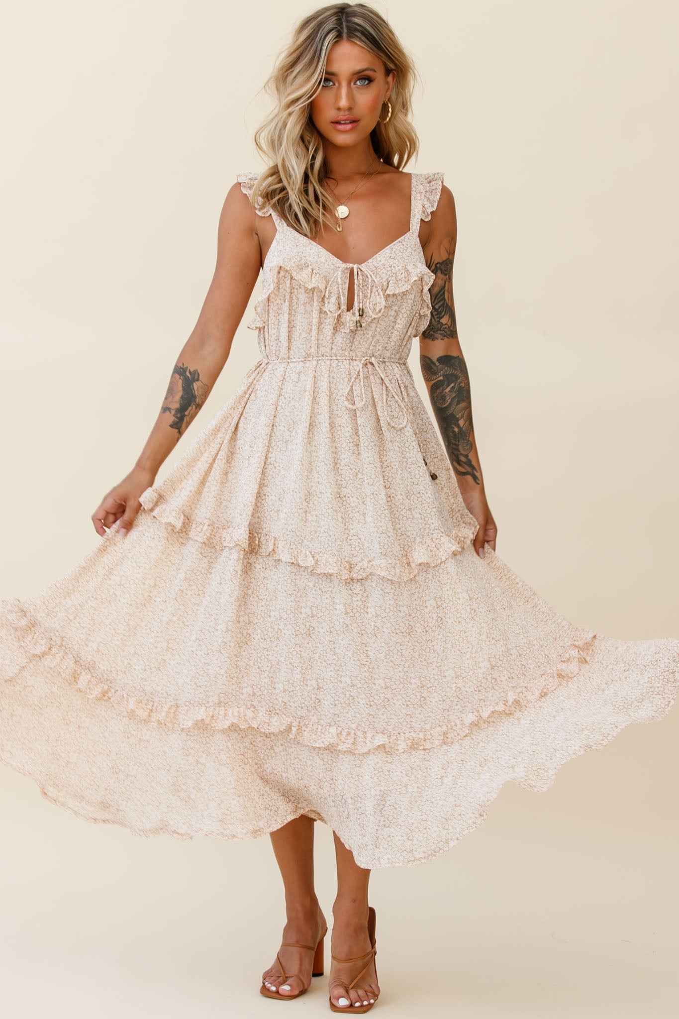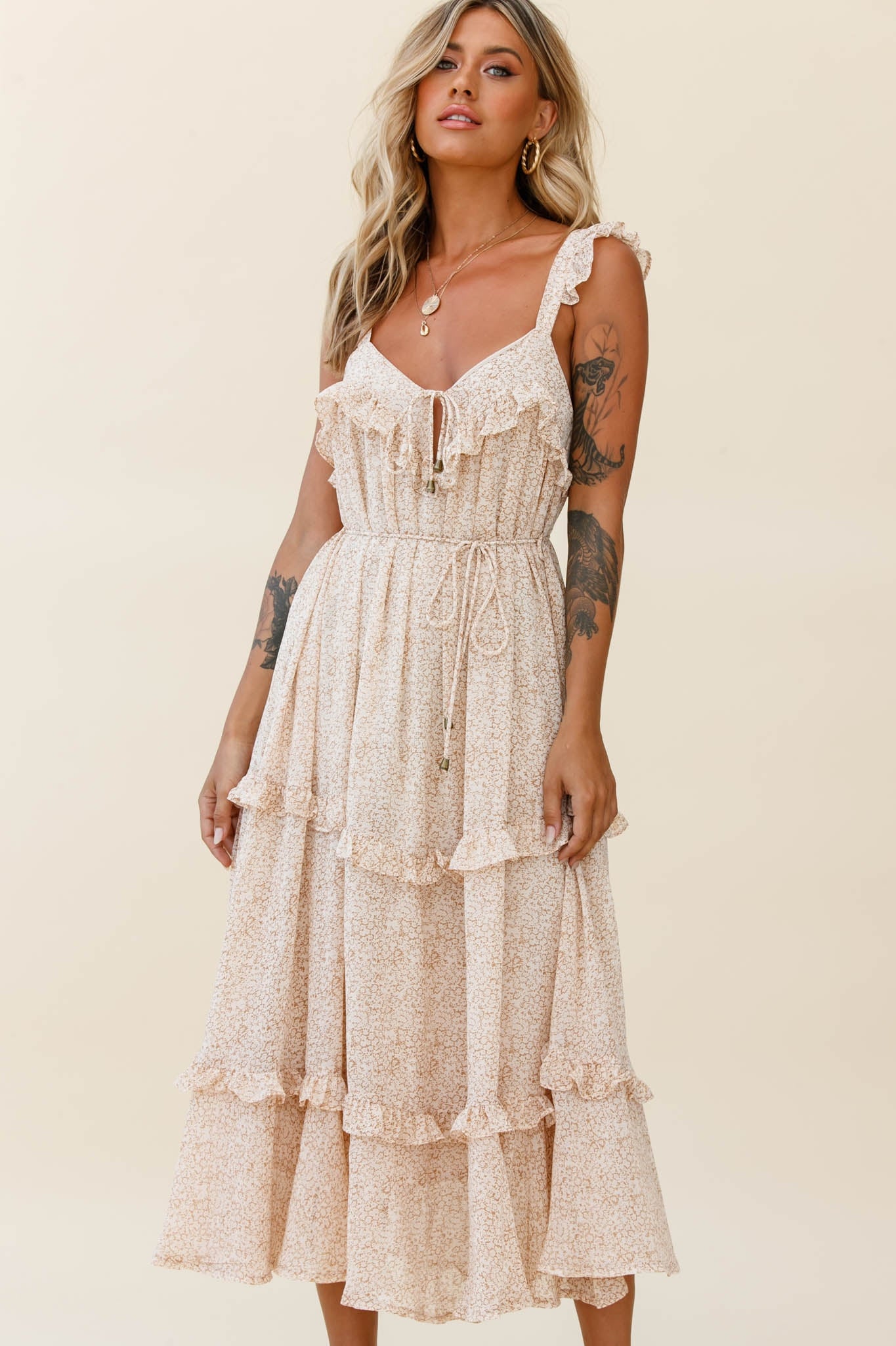 Sugar couldn't make you any sweeter in our gorgeous Priscilla dress. We love a floral print and this one is hard to beat. Perfect for high tea and champagne with your favorite ladies, teamed with pearl accent jewelry and nude, tie-up heels.