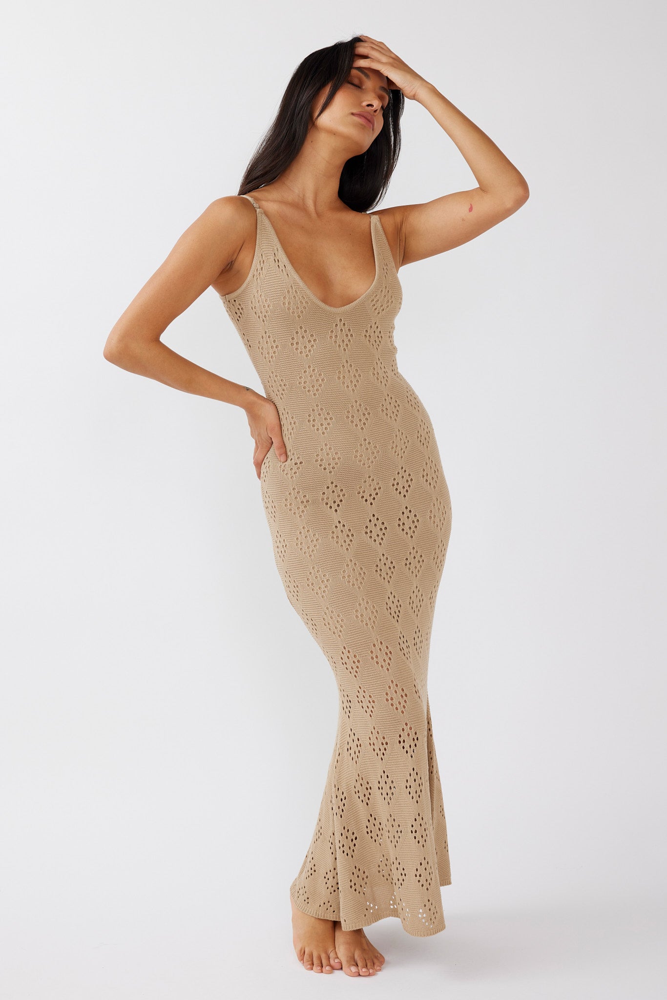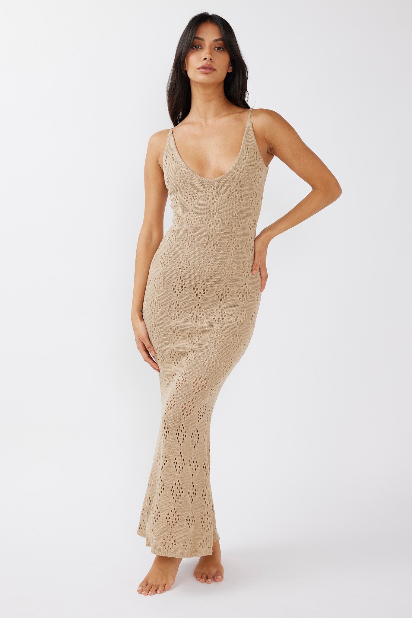 Float through the weekend in our chic Raven maxi dress. We are in love with the chic crochet knit throughout, giving us all the boho babe energy. Wear it to your fave beach bar for sunset drinks teamed with wedges and a tote for a cute look.