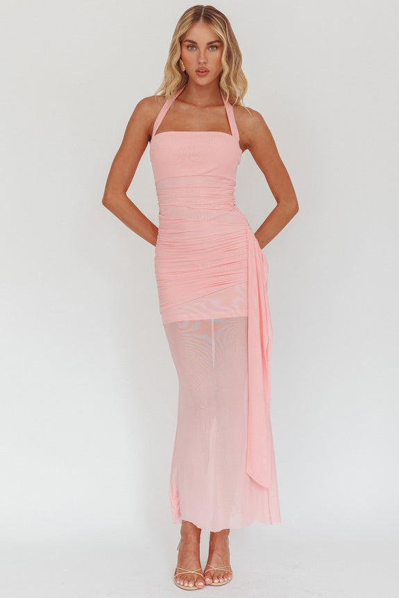 Rebekkah Halterneck Side Sash Maxi Dress Pink