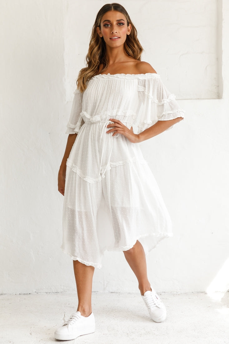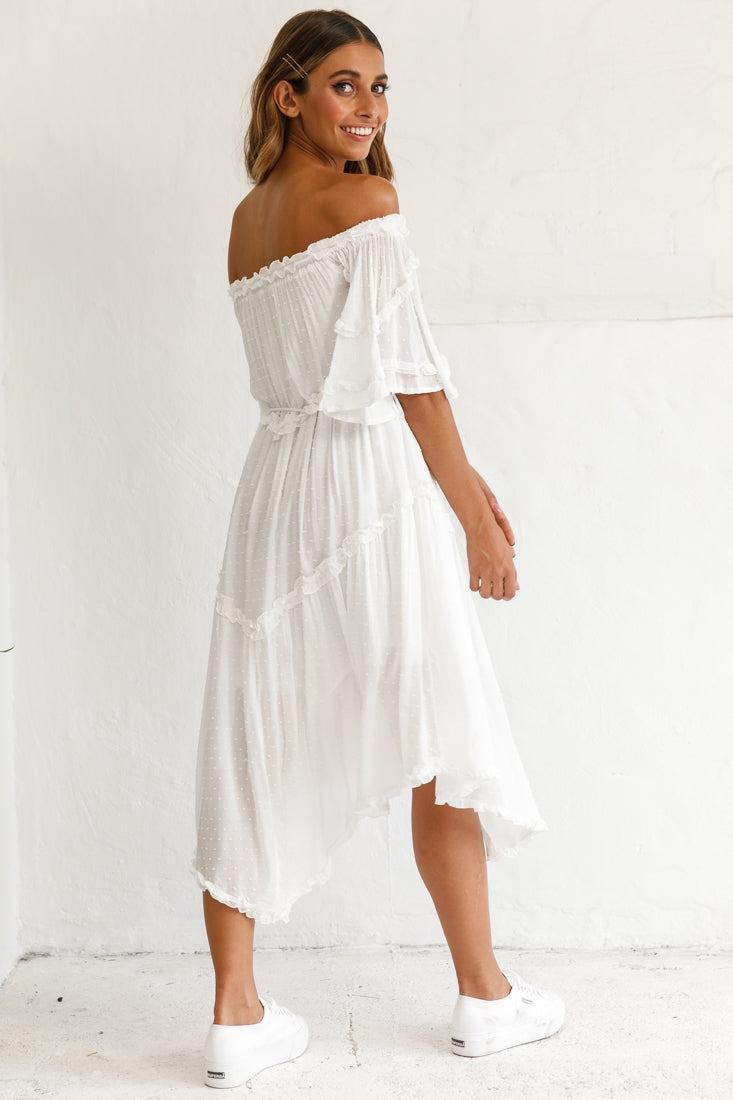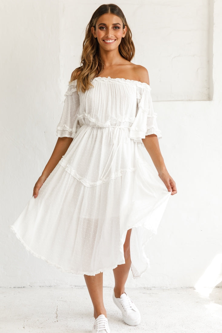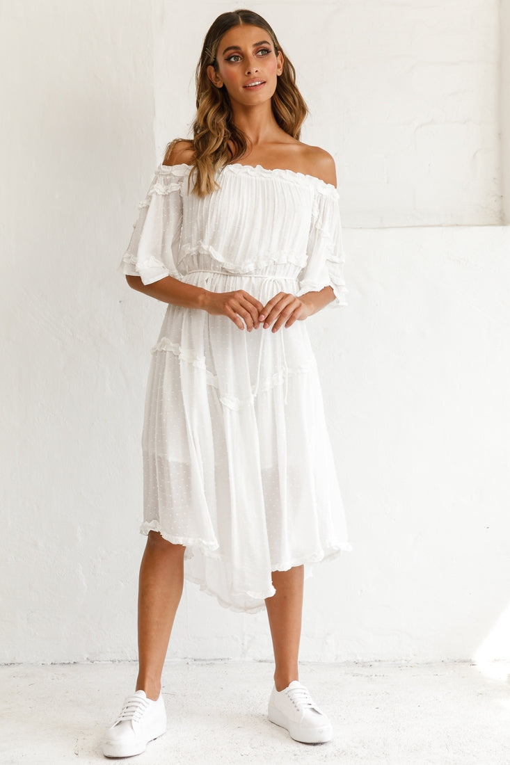 Make an entrance in our romantic Renoir dress. Fully lined, it features beautiful frill trimming throughout, an on-trend, off-shoulder style, 3/4 sleeves and a string tie around the waist. Perfect for a day of musing art galleries with bae teamed with tennis shoes and a basket bag.