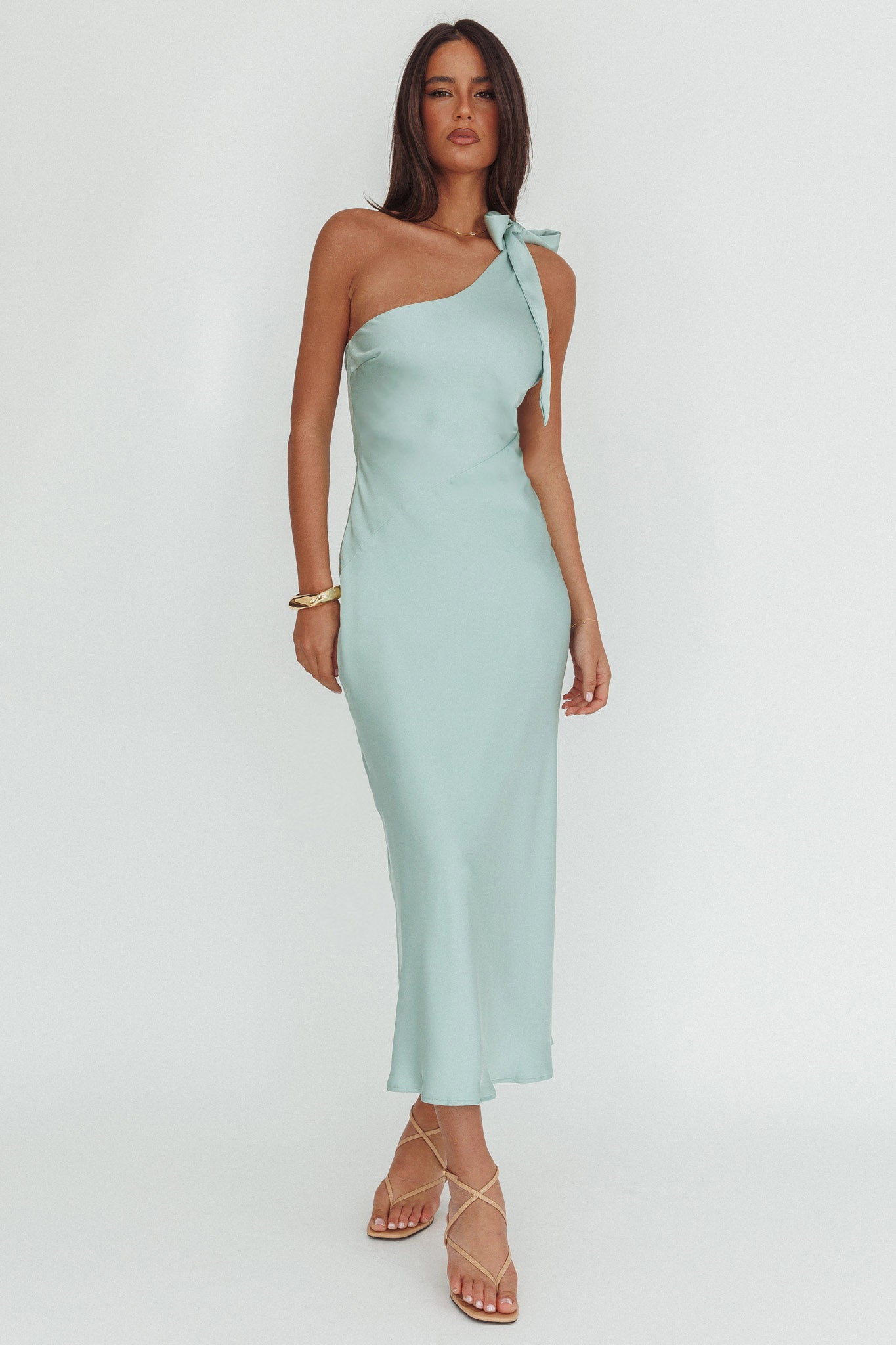 Robertah One-Shoulder Bow Maxi Dress Sage