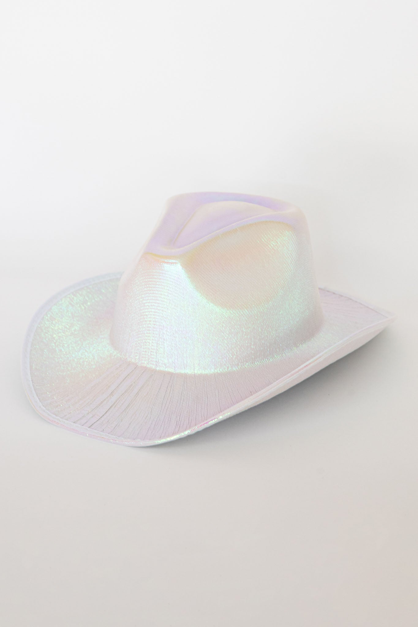 Take your festival 'fit to the next level with our hot Rodeo hat. Featuring an iridescent finish, it's perfect for a music festival or bachelorette! Team it with short shorts and western boots for an Insta-worthy look.