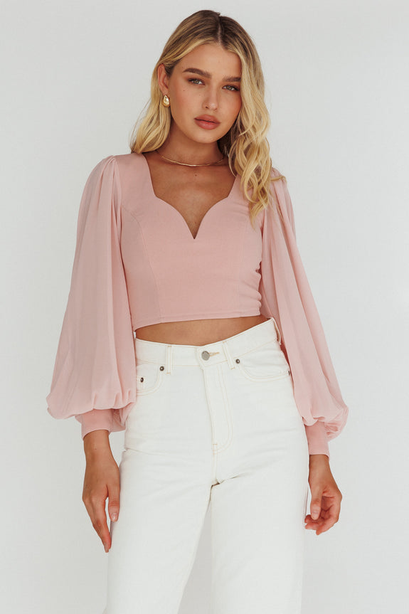 Romance Novel Sweetheart Neckline Open Back Top Blush