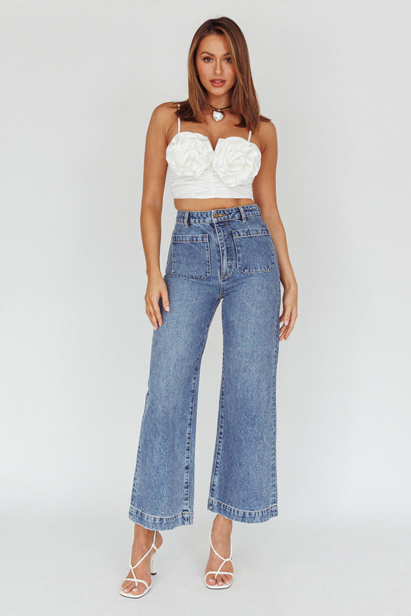 Make heads turn in our adorable Romina crop top. Featuring satin roses in the bust and adjustable shoulder straps. It's perfect for a weekend brunch with your besties teamed with wide-leg jeans and mules for a look we are loving.