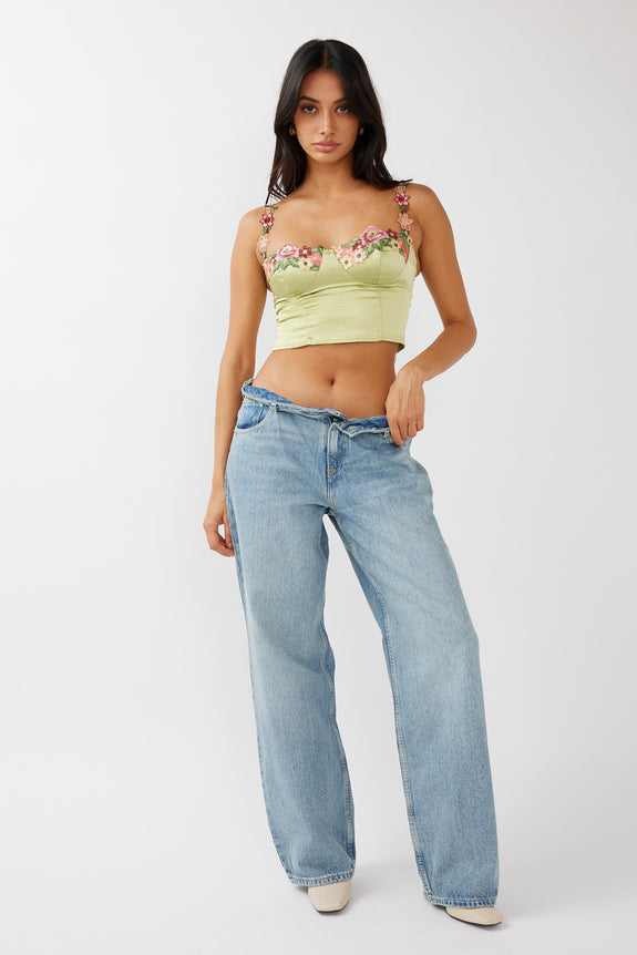Rose Garden Floral Applique Crop Top Lime