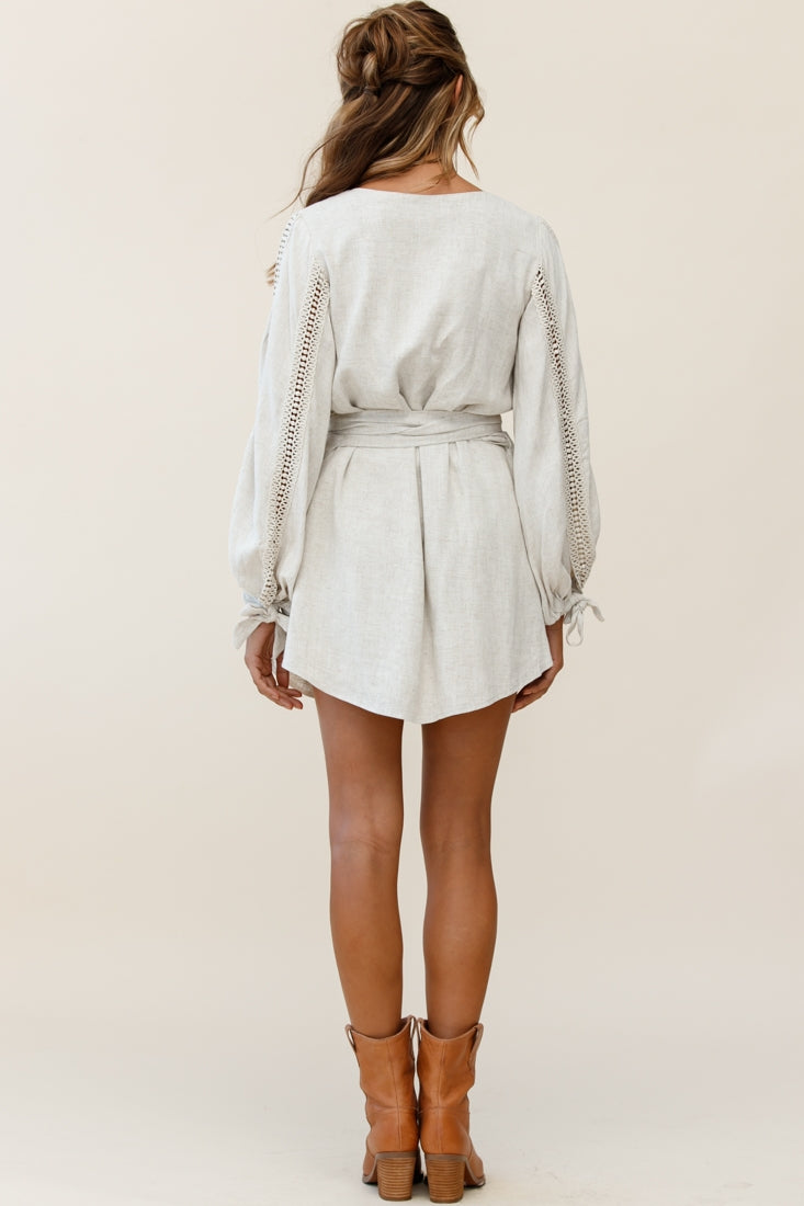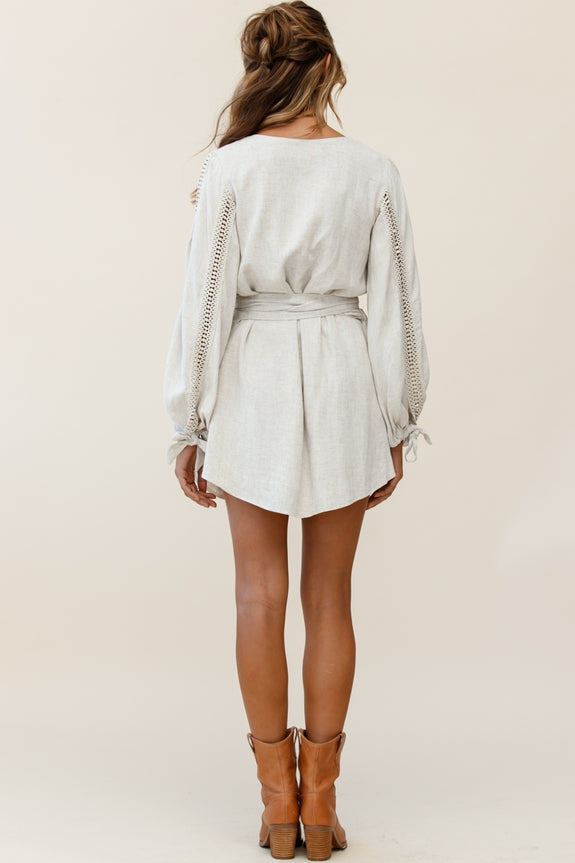 Hey there, cutie! Where'd you get that dress? You'll be flooded with compliments in our Ruthie dress. Featuring long balloon sleeves with crochet insert detail, a surplice neckline and separate waist tie. Perfect for a brunch date teamed with boots and a tote. Cute!