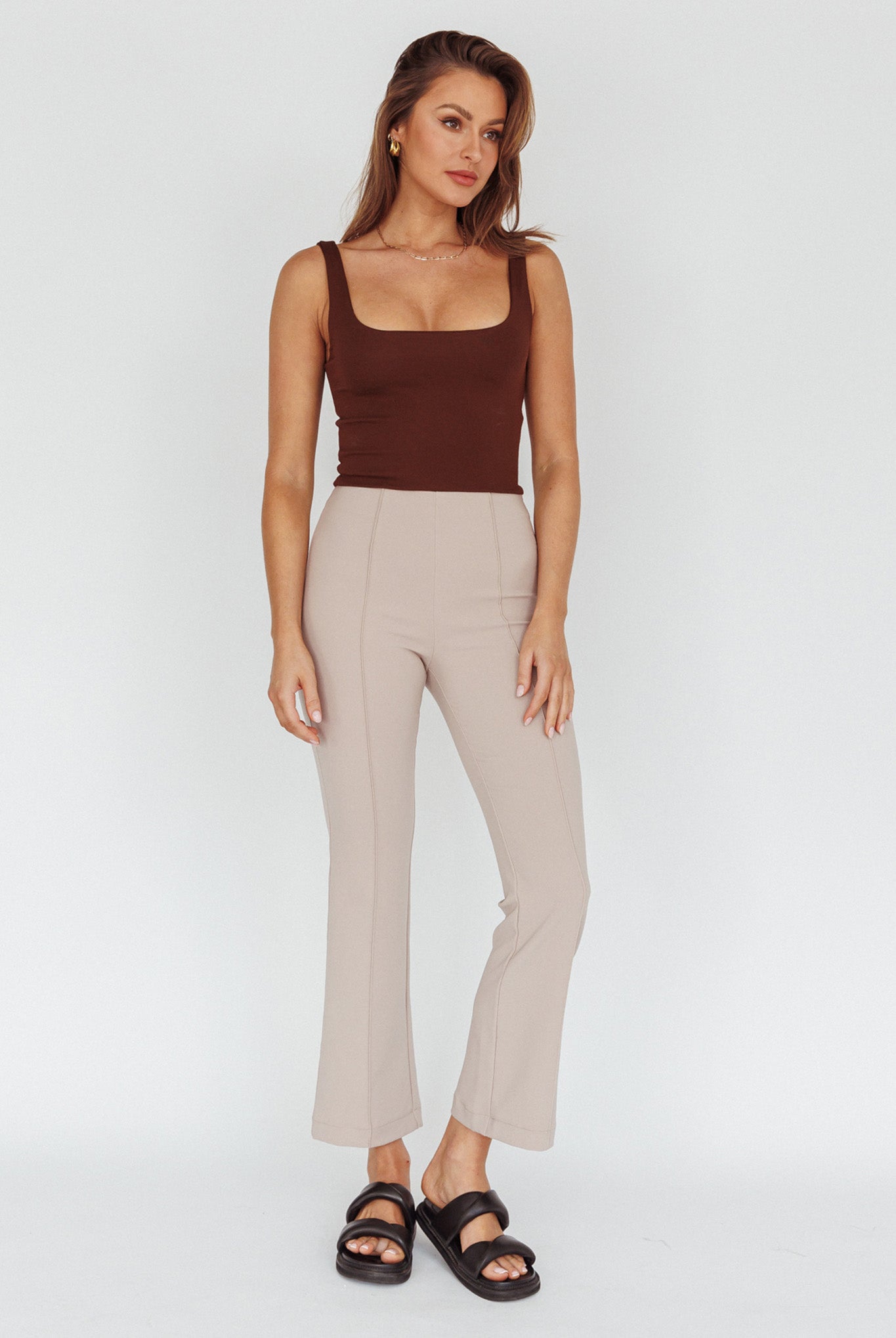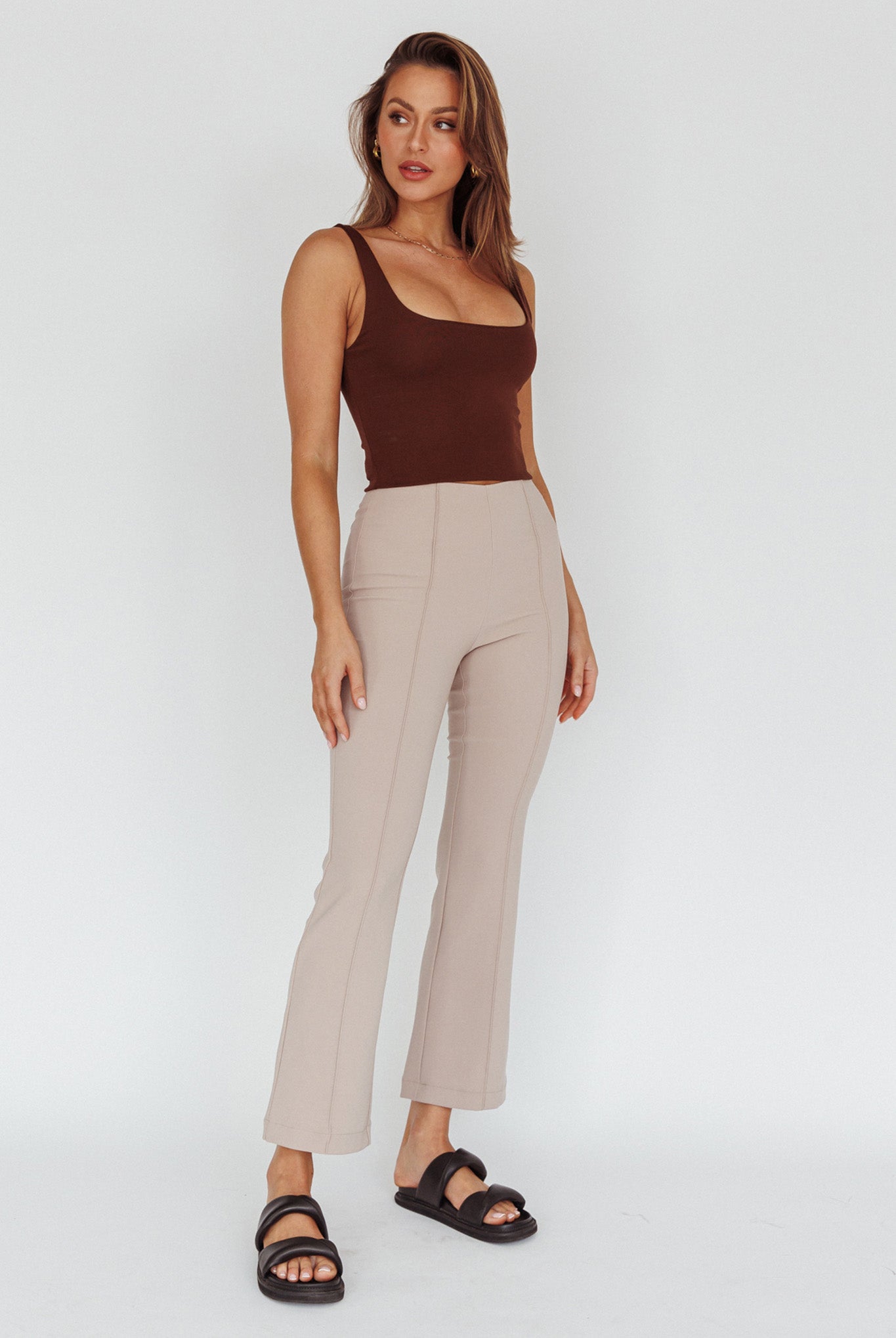 Stand out from the crowd in our chic Sabria pants. We are loving the flattering mid-rise cut and on-trend, flared leg. Perfect for your 9 to 5 or dinner with your girls. Team it with a crop top, blazer and mules for a sophisticated look.