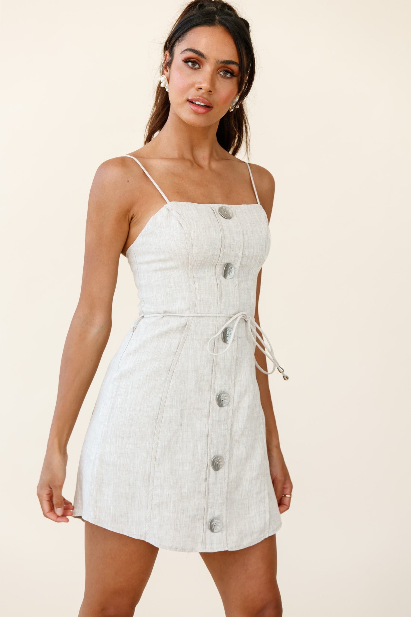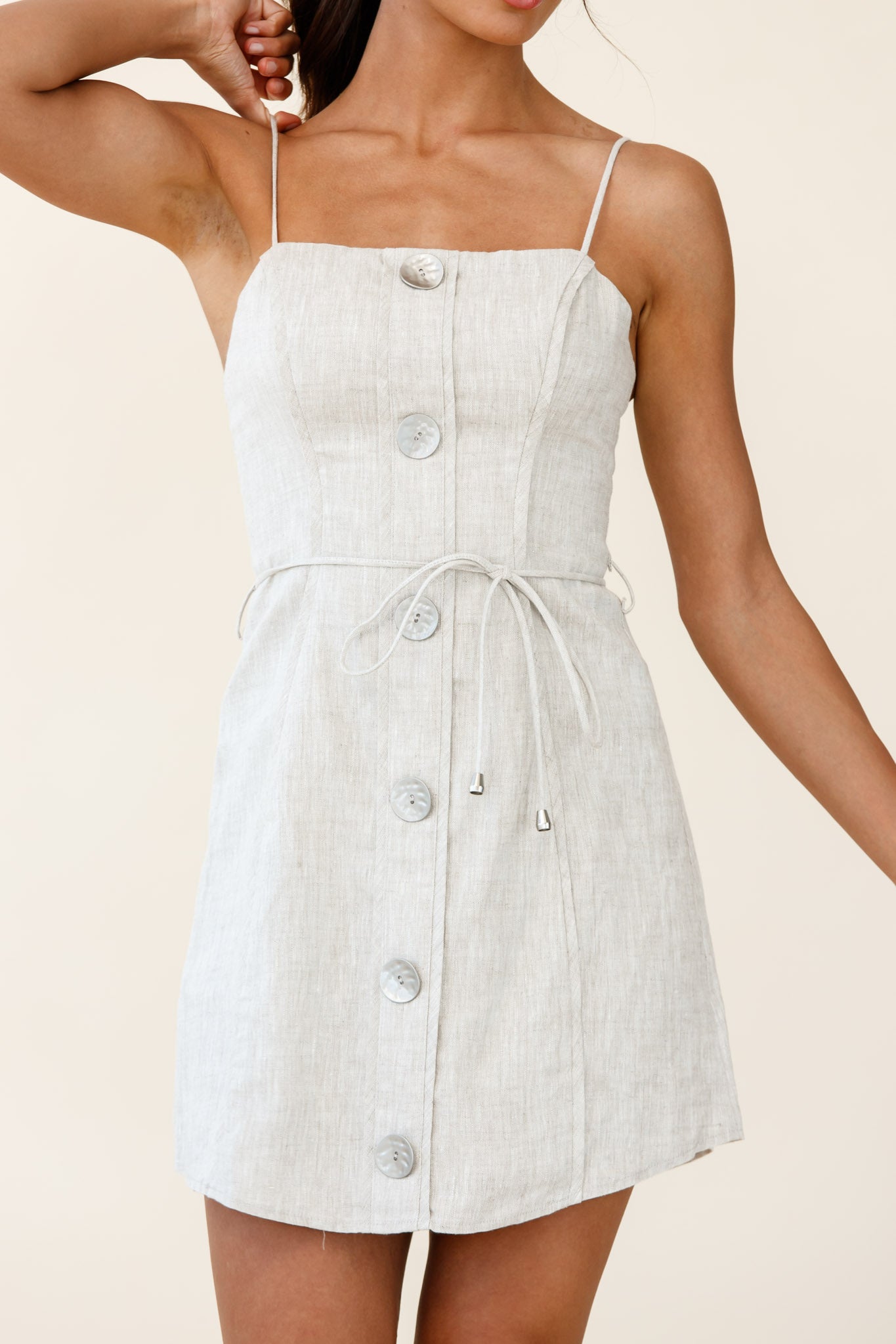 Sacramento Faux Placket Button Detail Dress Natural