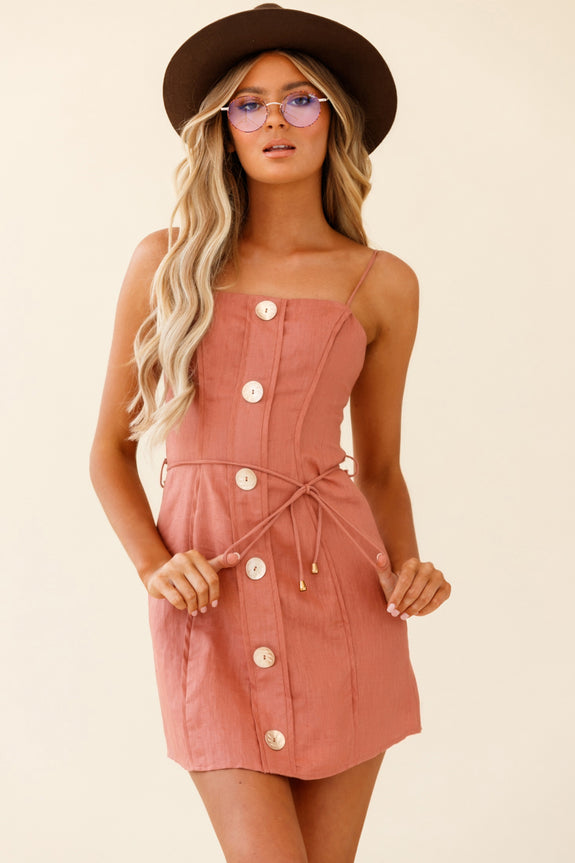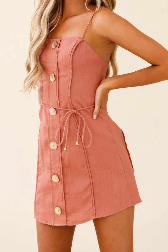 Sacramento Faux Placket Button Detail Dress Rose
