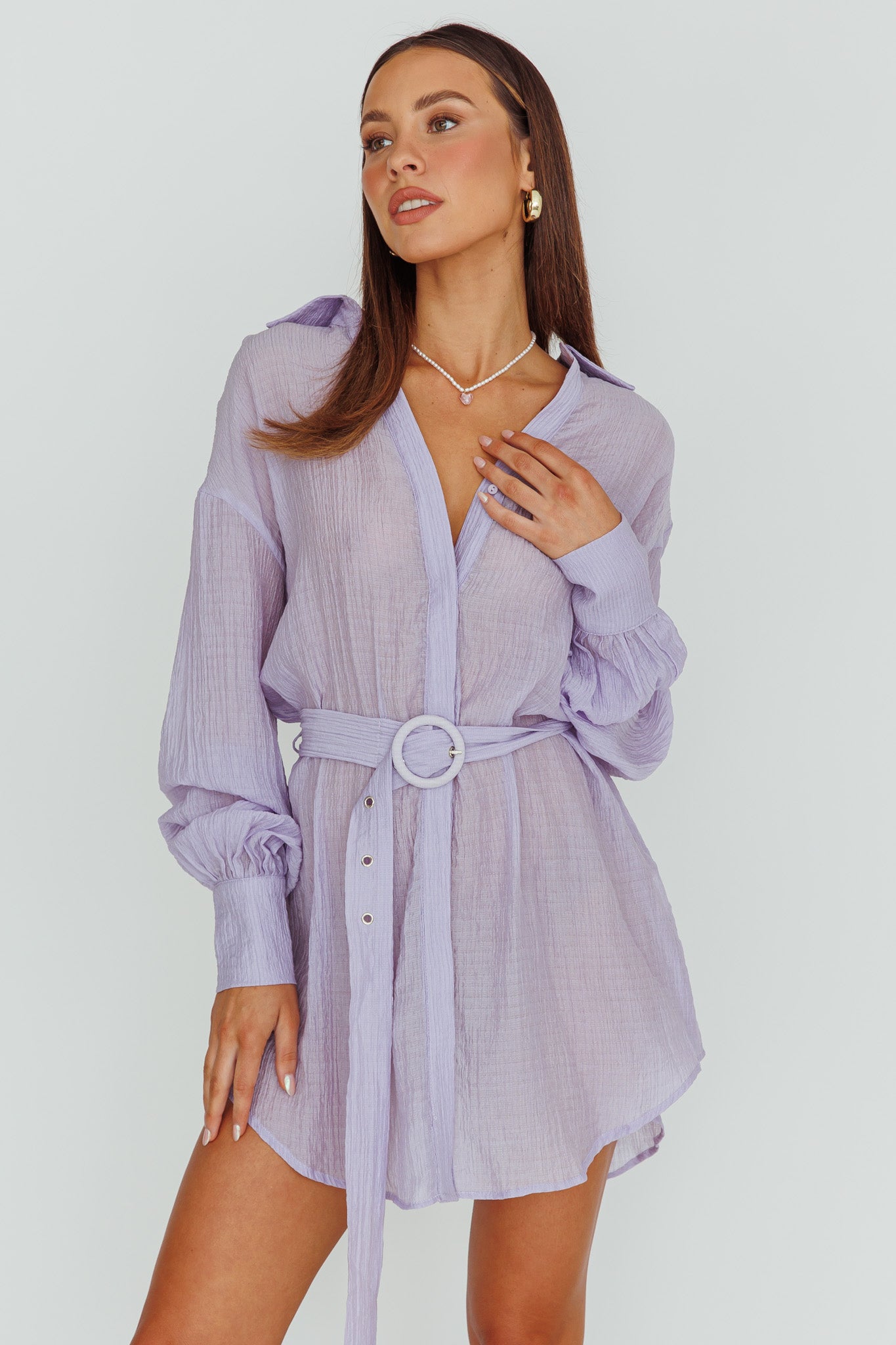 Sady Long Sleeve Shirt Mini Dress Lilac