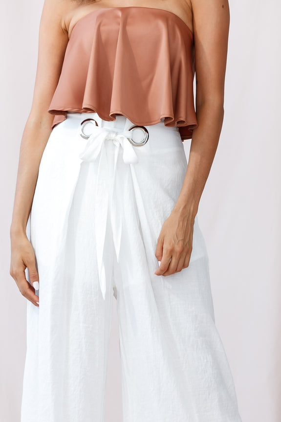 Pack your bags because these pants will have you wanting to go on a Mediterranean vacay, stat. Featuring super cute eyelet waist-tie closure details at the front, partial lining, and on-trend wide leg, these pants are ultra light and comfortable. Team them with our Rivera top and wedges for extra style points.