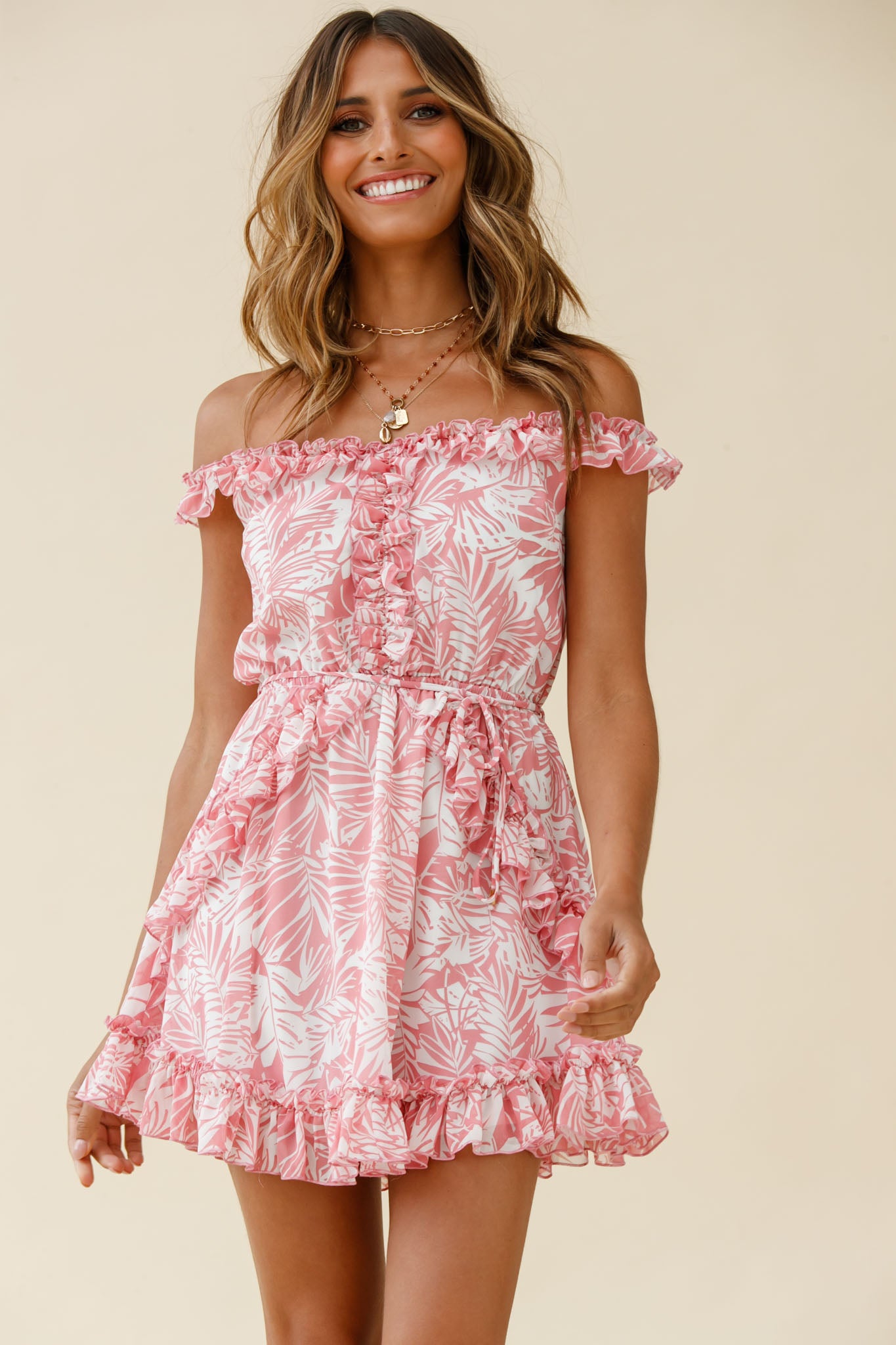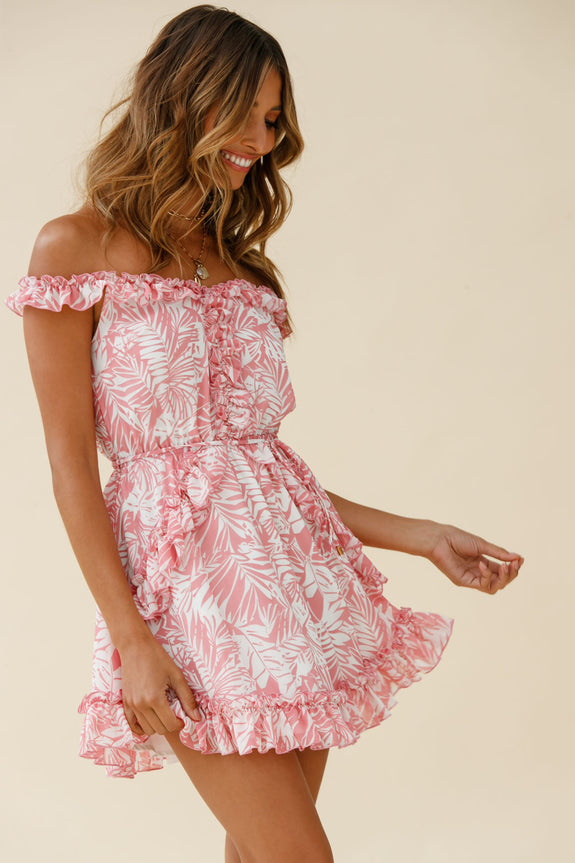 You'll be dreaming of an island escape in our Sail Away dress. We are loving the tropical print fabric and super cute frill accents. Perfect for a Summer getaway teamed with your favorite sandals and a basket weave bag.