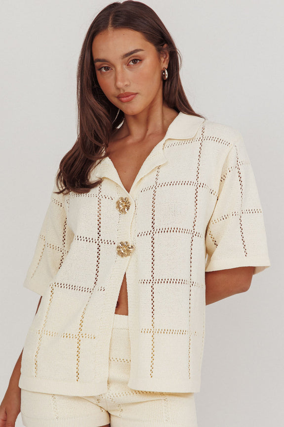 Make jaws drop in the super cute Sailor top. It features a pretty knit fabric and golden buttons. It would look amazing worn to a fun birthday dinner teamed with its matching shorts, strappy block heels and a tote for a head-turning look.