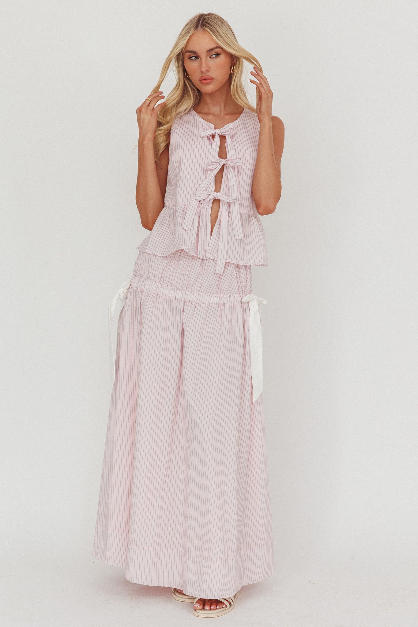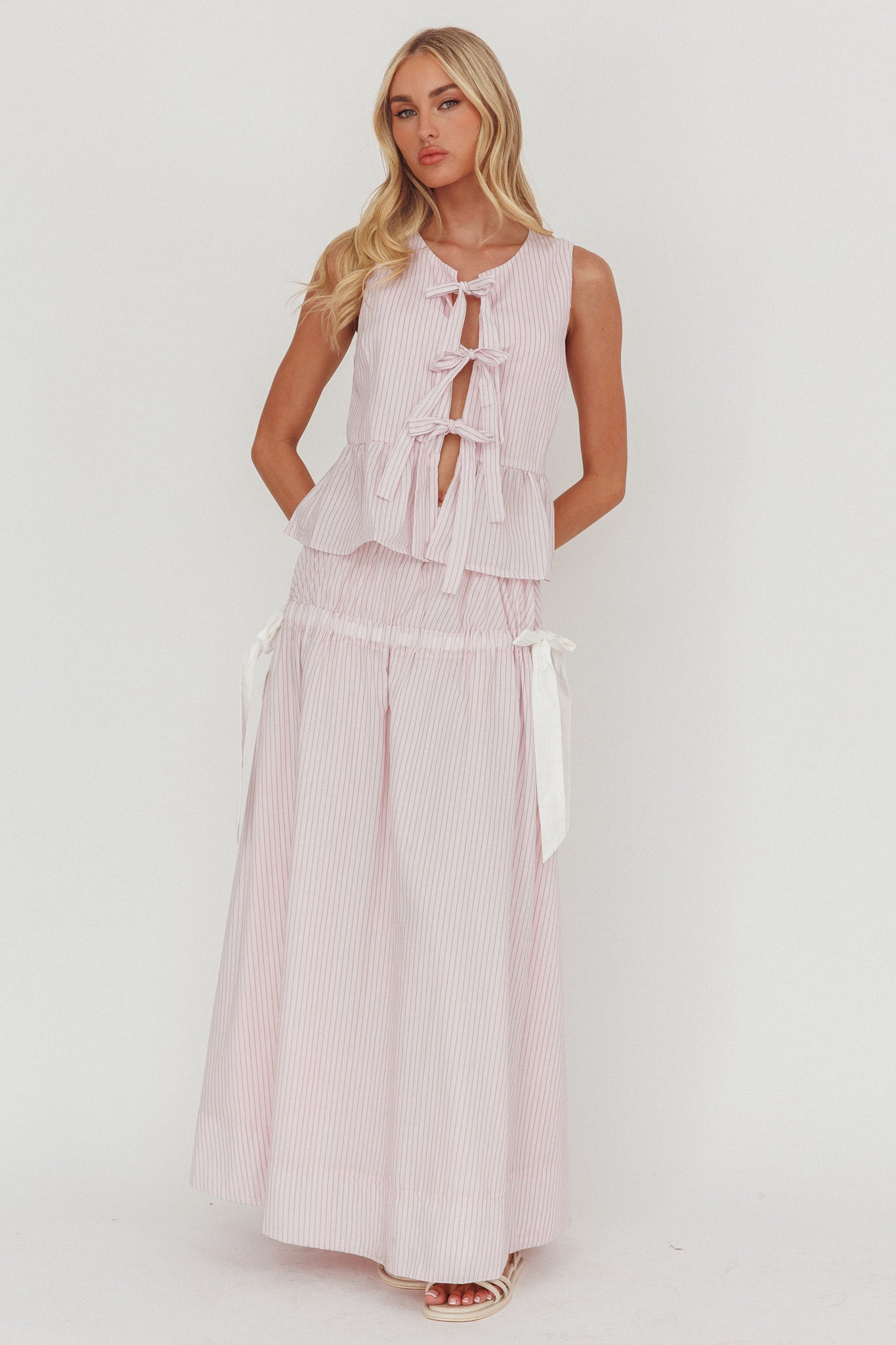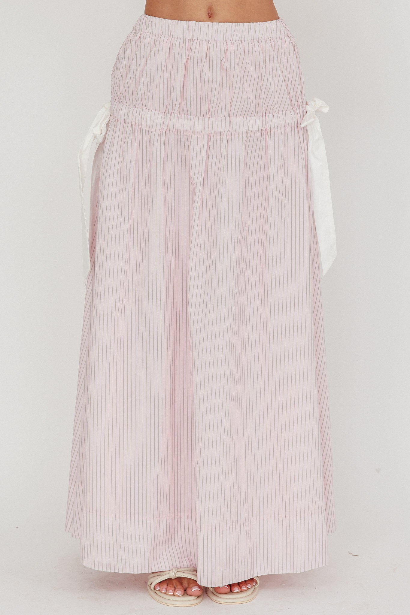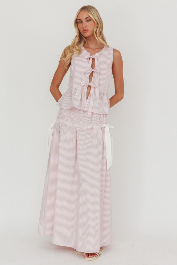 Breeze through your weekend in our super cute Salty Sea maxi skirt. It features an elasticated waist with the sweetest bow detail in the sides and is perfect for weekend brunch dates with your besties. Team it with with its matching top, sandals and a tote for an It Girl look.