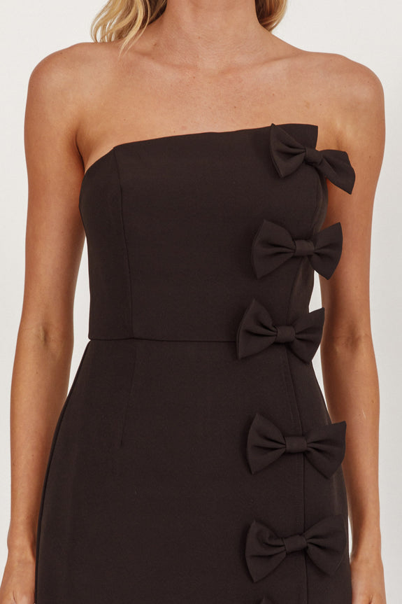 Steal the spotlight in our gorgeous Samanntha midi dress. It has a strapless design and the cutest bow details in the side. It's perfect for a black tie event or birthday celebration. Team it with diamante heels and a clutch for an elegant look.