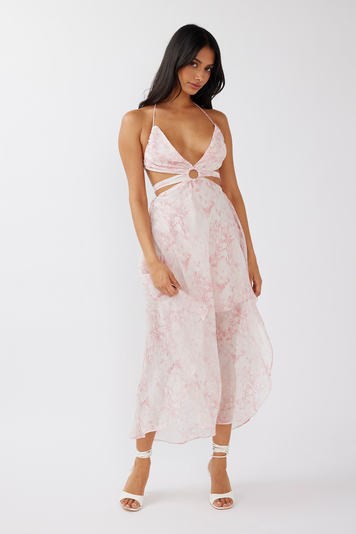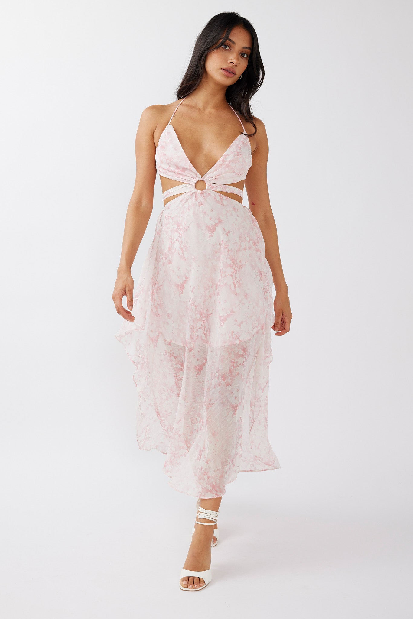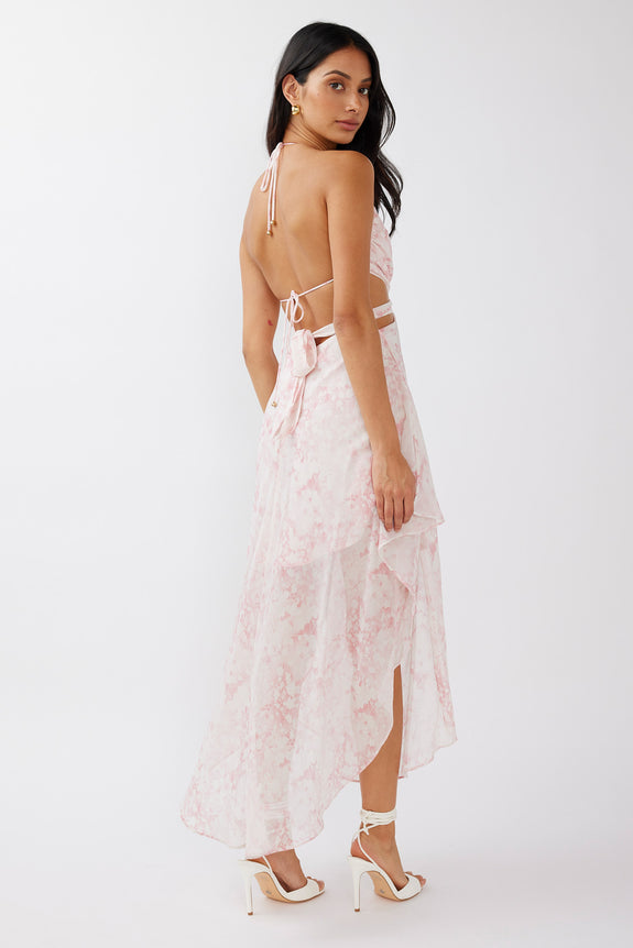 Samia Cut-Out Halterneck Midi Dress Print Blush
