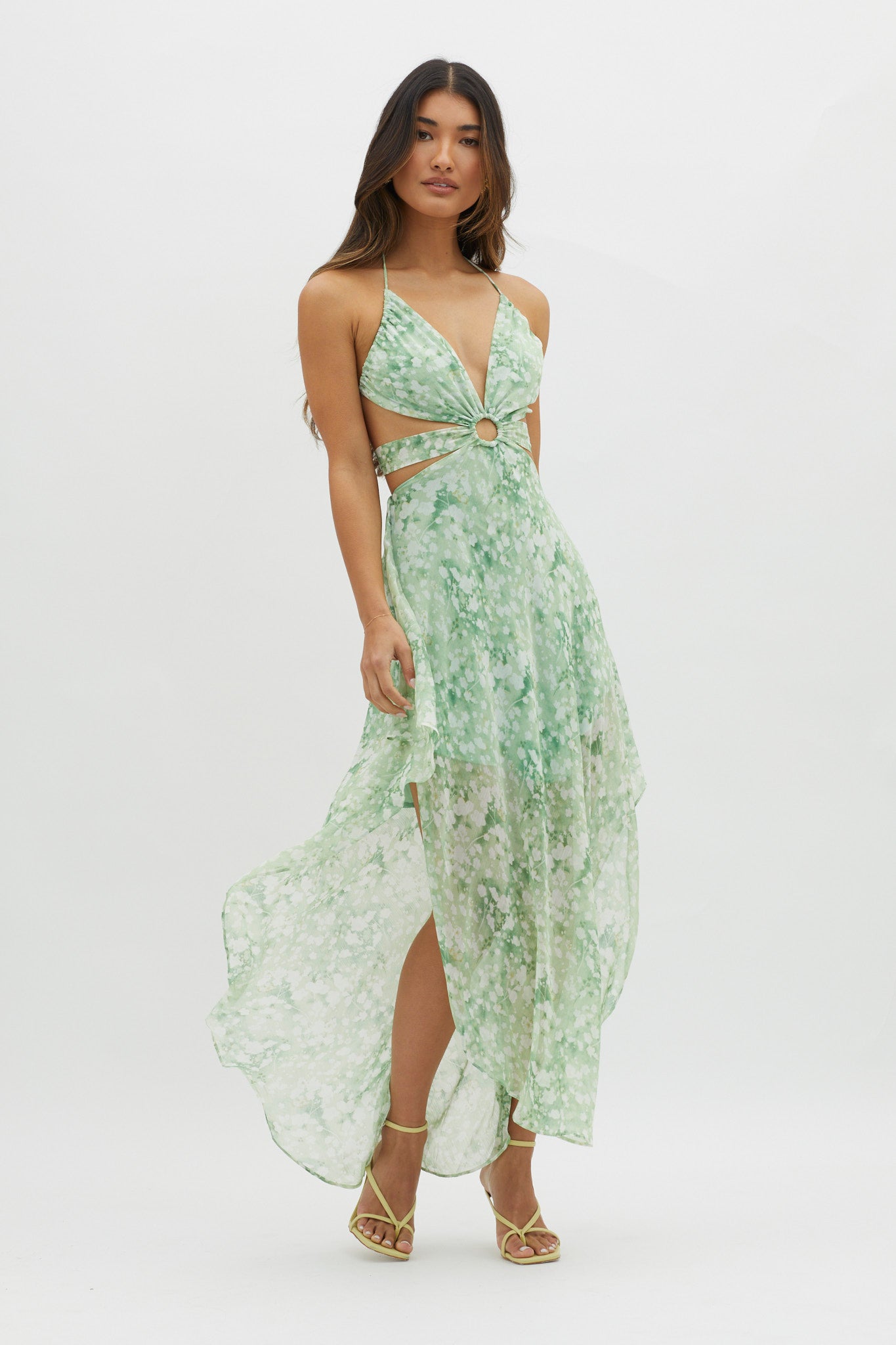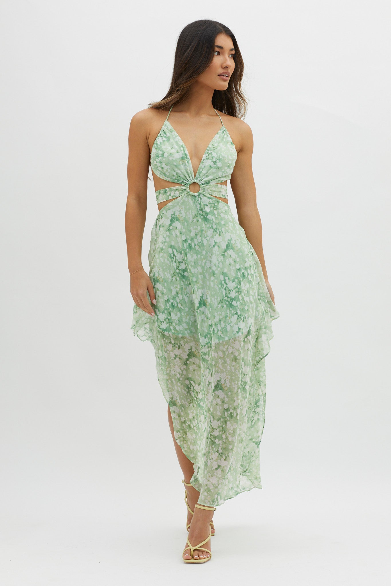 Samia Cut-Out Halterneck Midi Dress Print Green