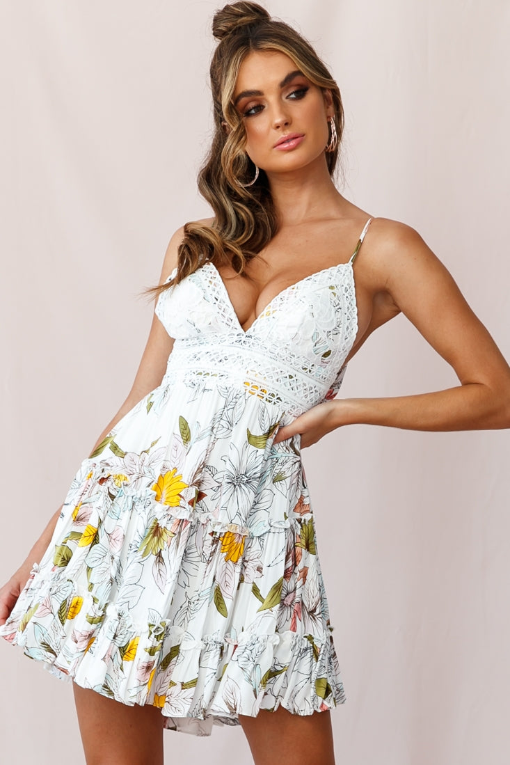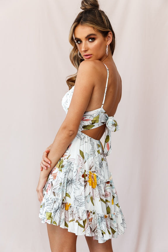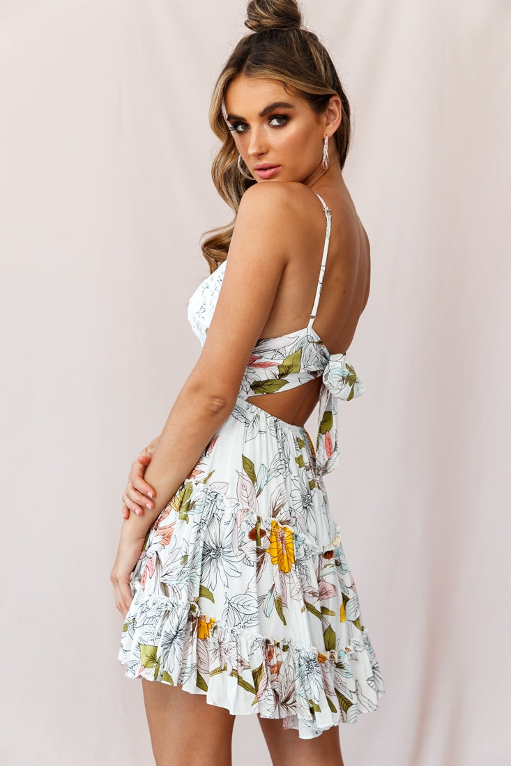 Command the spotlight in our stunning Sanctuary dress. Featuring gorgeous appliqué over the bust, adjustable cami straps, tie-knot back and a frill hem. Perfect for a first date when you really want to leave a lasting impression. Team it with canvas wedges and gold hoop earringd for a look we are loving.
