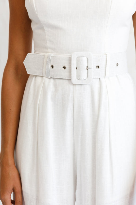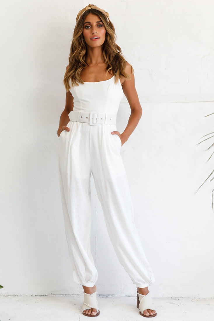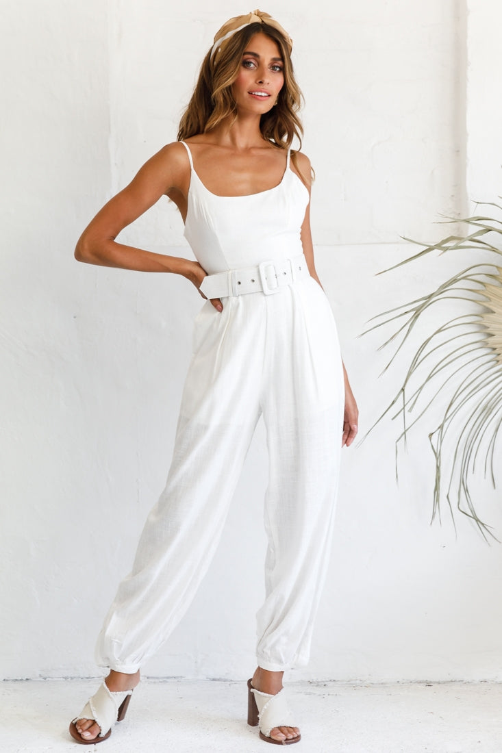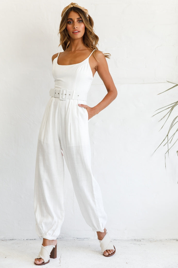 Every day will feel like a sweet, sunny day in our Santa Barbara jumpsuit. Perfect for a weekend away, wine tasting and brunching. It features a fitted cuff hem at the ankles with button details, pockets, and a fabric waist belt. Team it with tan mules for a casual-chic look we are in love with.