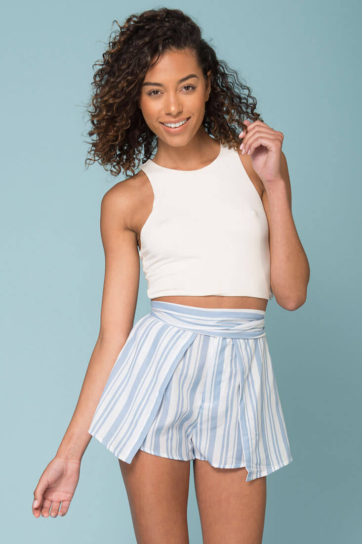 Amazing shorts to take you anywhere! Waist tie brings a cutesy look to this wrap around skort. Pair with a white cami and clean sneaks for a fun, sporty look.