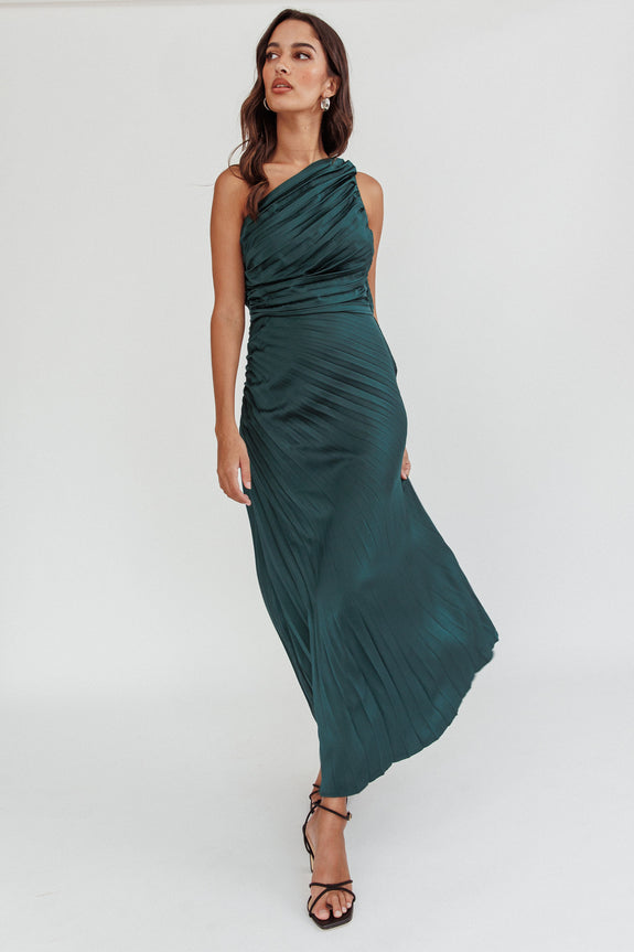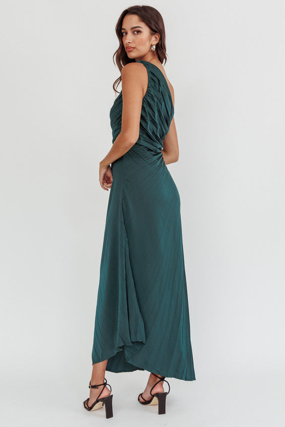 Scarlett One-Shoulder Pleat Maxi Dress Green