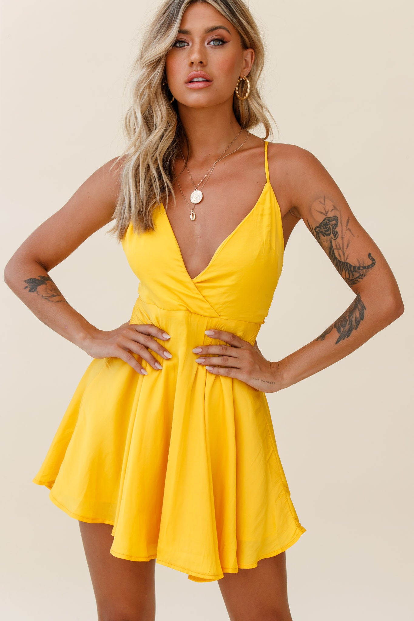 Secret Place Strappy Tie Back Party Dress Yellow