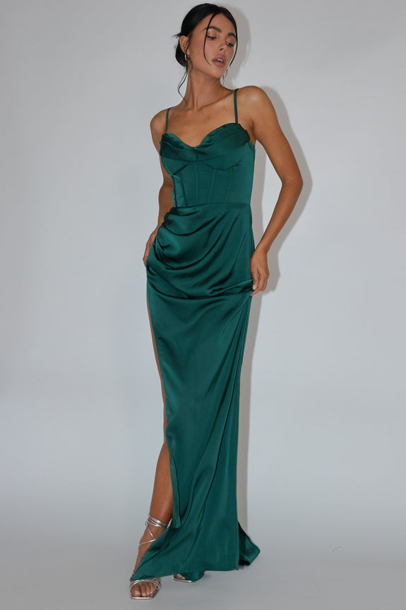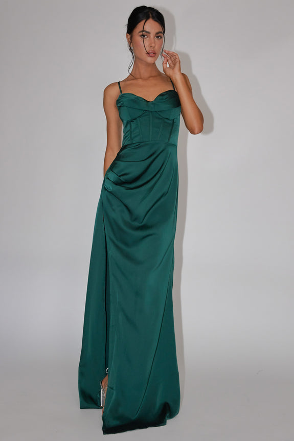 Secret Sweetheart Neckline Split Maxi Dress Hunter Green