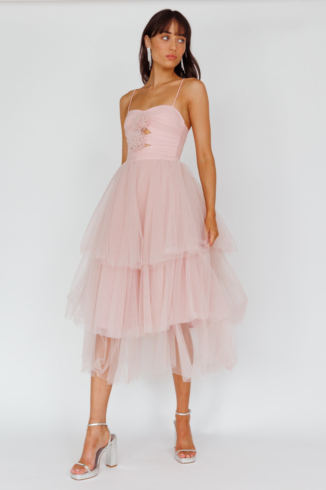 Seraphina Rose Bodice Tulle Midi Dress Blush