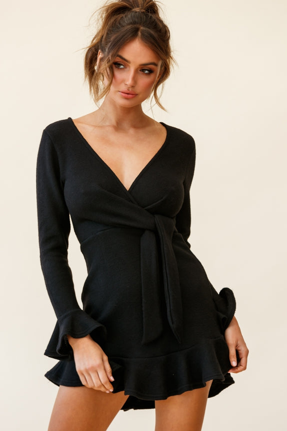 Hey there, boss babe! Look at you, slaying in our chic Shalini dress. Featuring a soft, knit fabric throughout, long sleeves with flared cuffs, faux-wrap surplice neckline with a tie feature at the side and a ruffle hem. Perfect for owning those boardrooms or mimosa brunches with your girls. Team it with pumps and a tote for a classic look we can't get enough of.