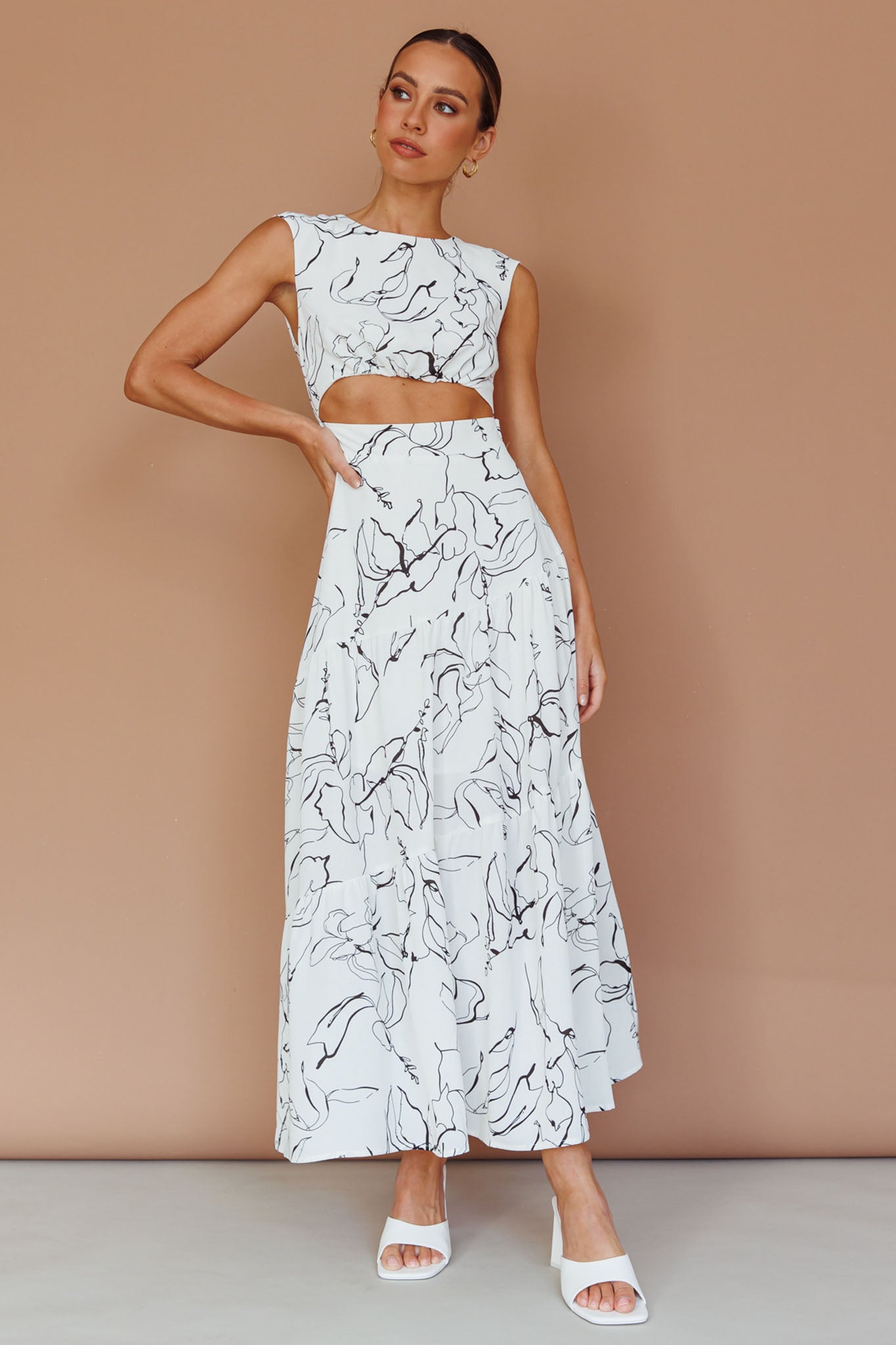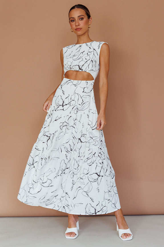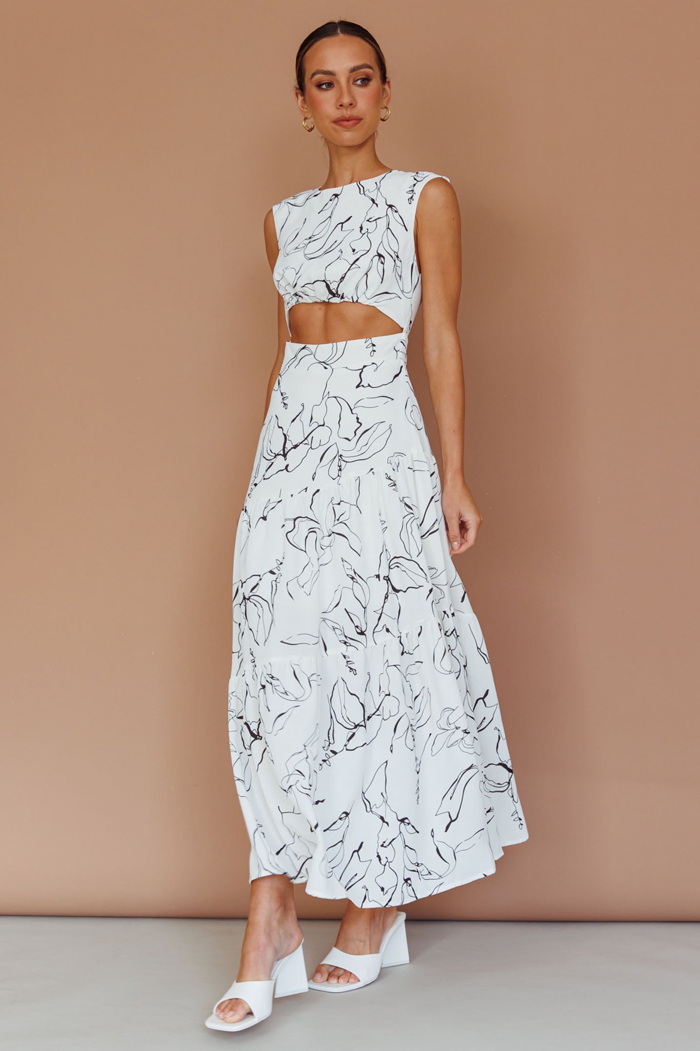 Shaniqua Cut-Out Sleeveless Midi Dress Print White