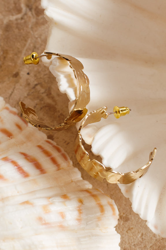 Steal the show in our stunning Shari hoop earrings. We are loving the hammered gold finish. Perfect for elevating any outfit, they'll give you that It Girl factor. Team them with our our Well Versed dress for a jaw-dropping look.