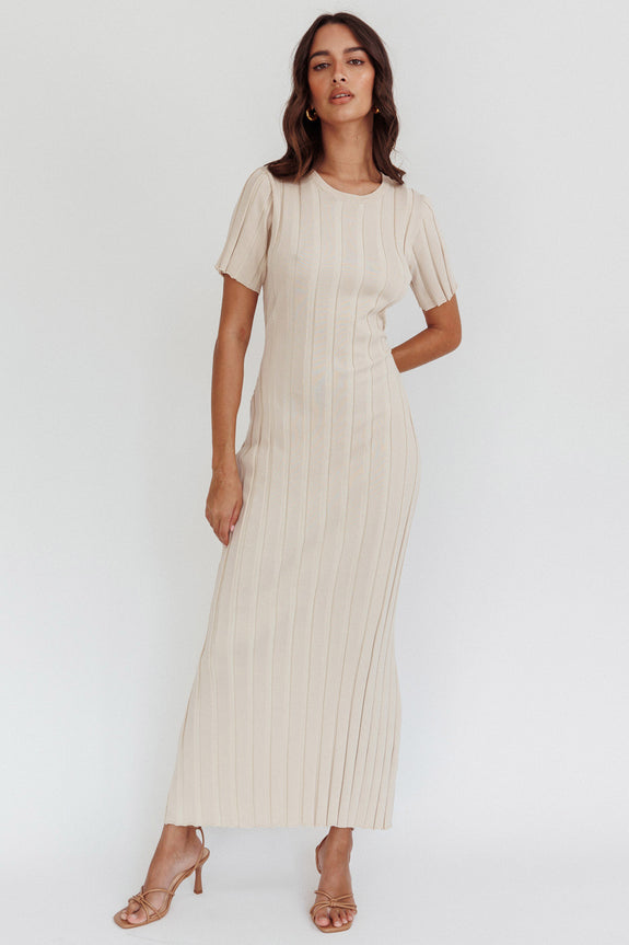 Shaylee Short Sleeve Knit Maxi Dress Sand