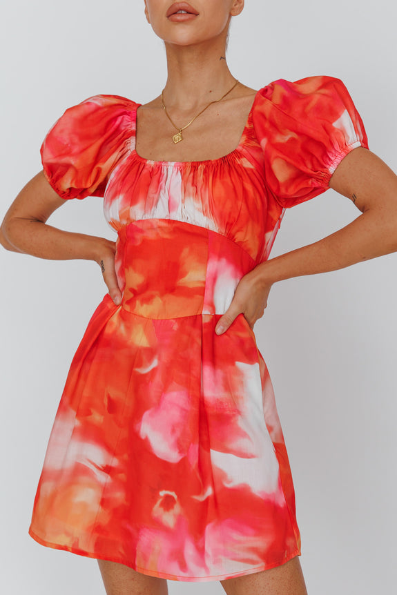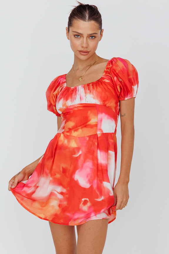 Shayna Puff Sleeve Mini Dress Print Red